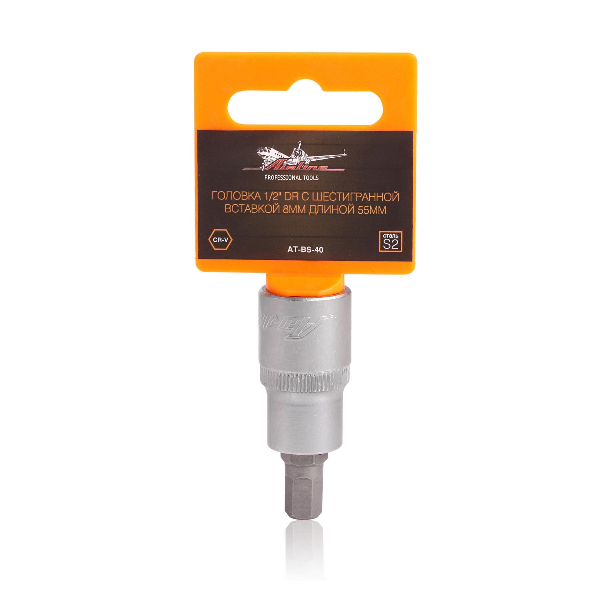 AT-BS-40 AIRLINE Головка 1/2 DR с шестигранной вставкой 8мм длиной 55мм (AT-BS-40)