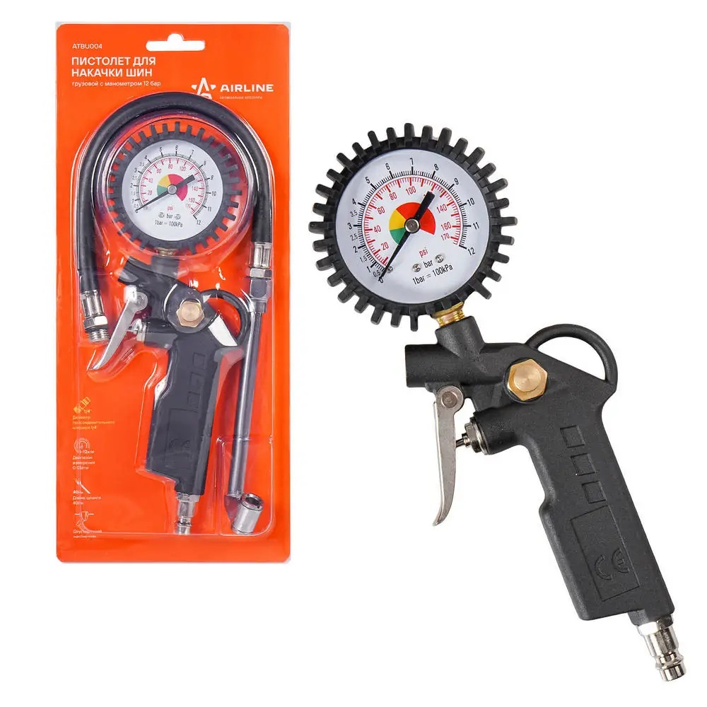 ATBU004 AIRLINE Пистолет для накачки шин грузовой с манометром 12 бар ATBU004