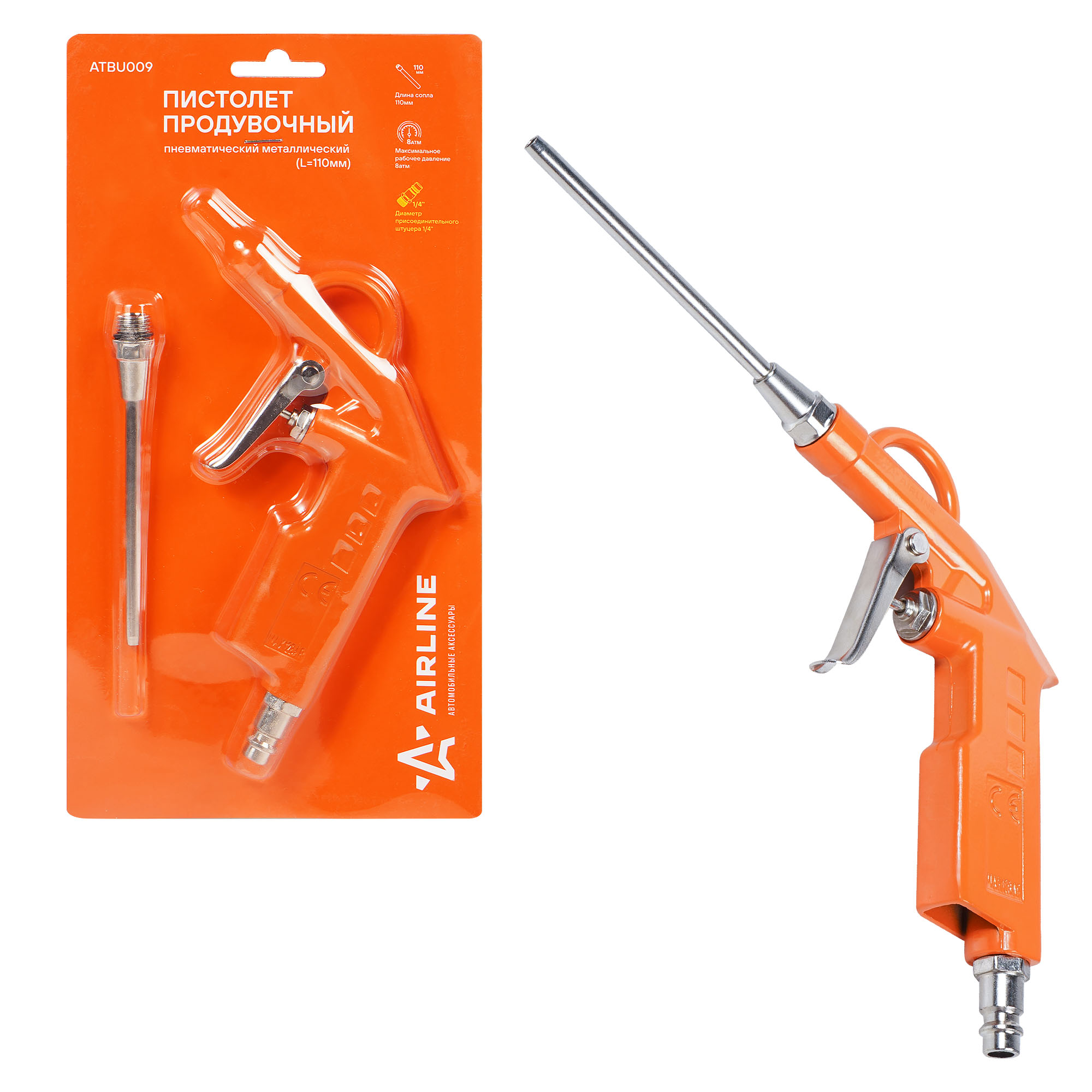 | Наименование | Пистолет продувочный 1/4" "AIRLINE" (пневматический L=110 мм. металл) |