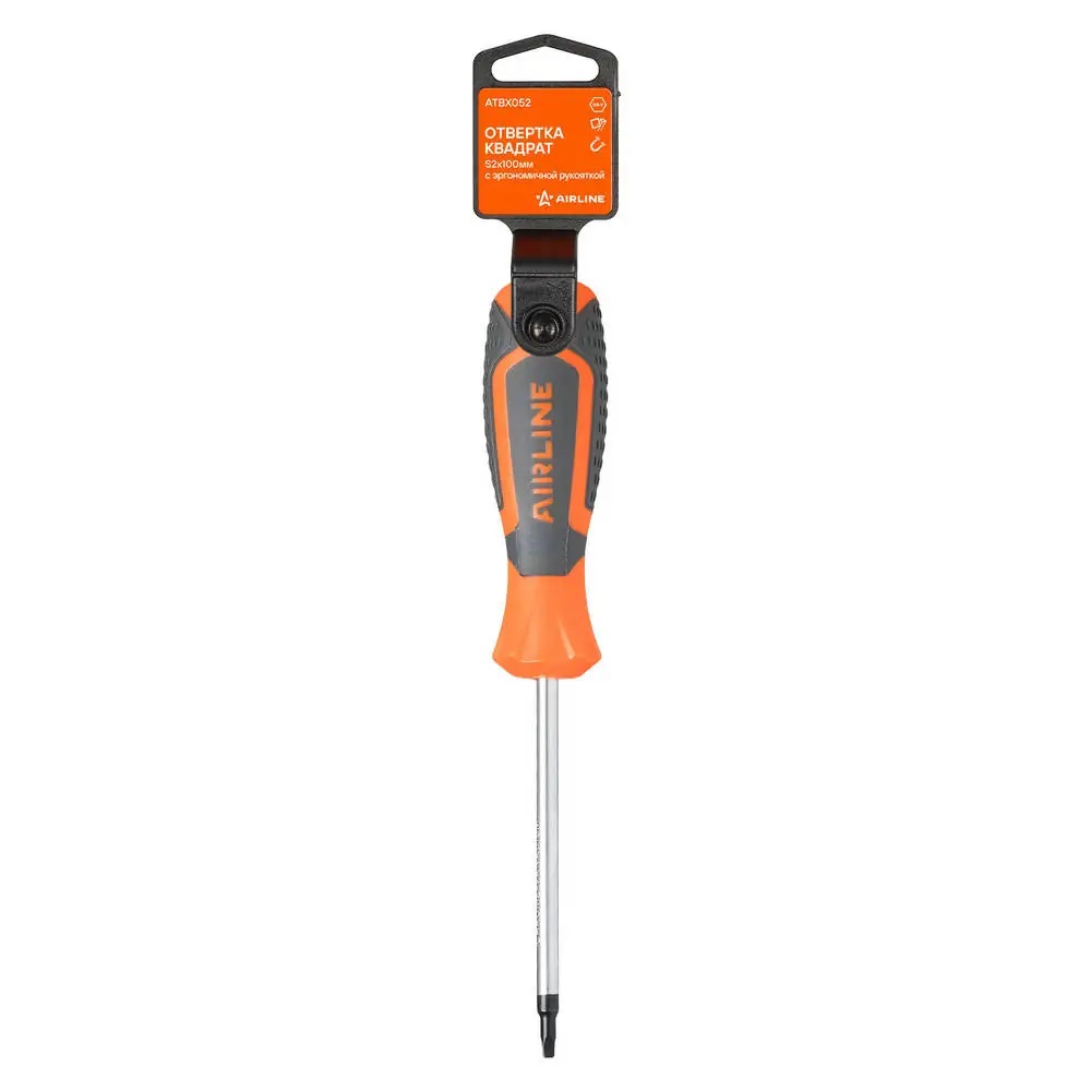 ATBX052 AIRLINE Отвертка квадрат S2x100мм с эргономичной рукояткой магнитная, пласт.подвес (ATBX
