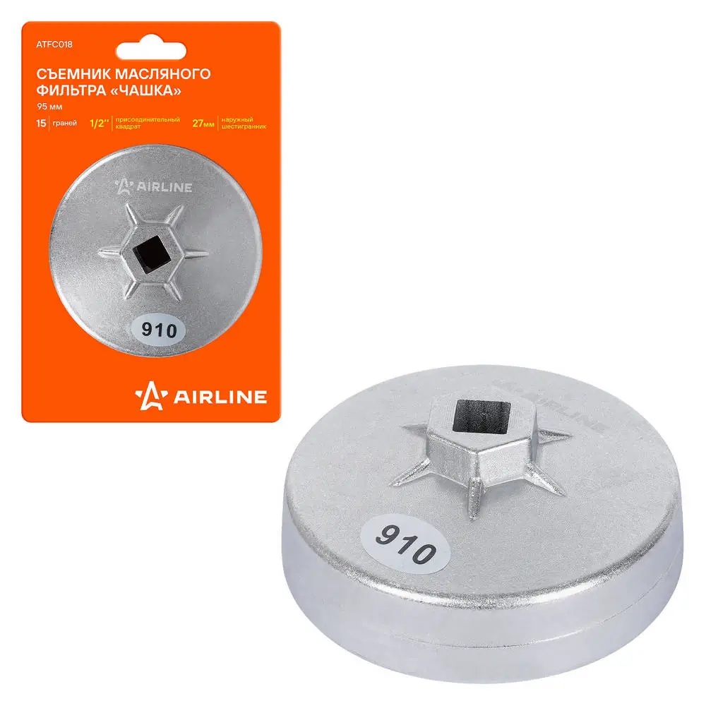 | Наименование | Съемник масляного фильтра 95 мм "AIRLINE" (чашка 15 граней) |