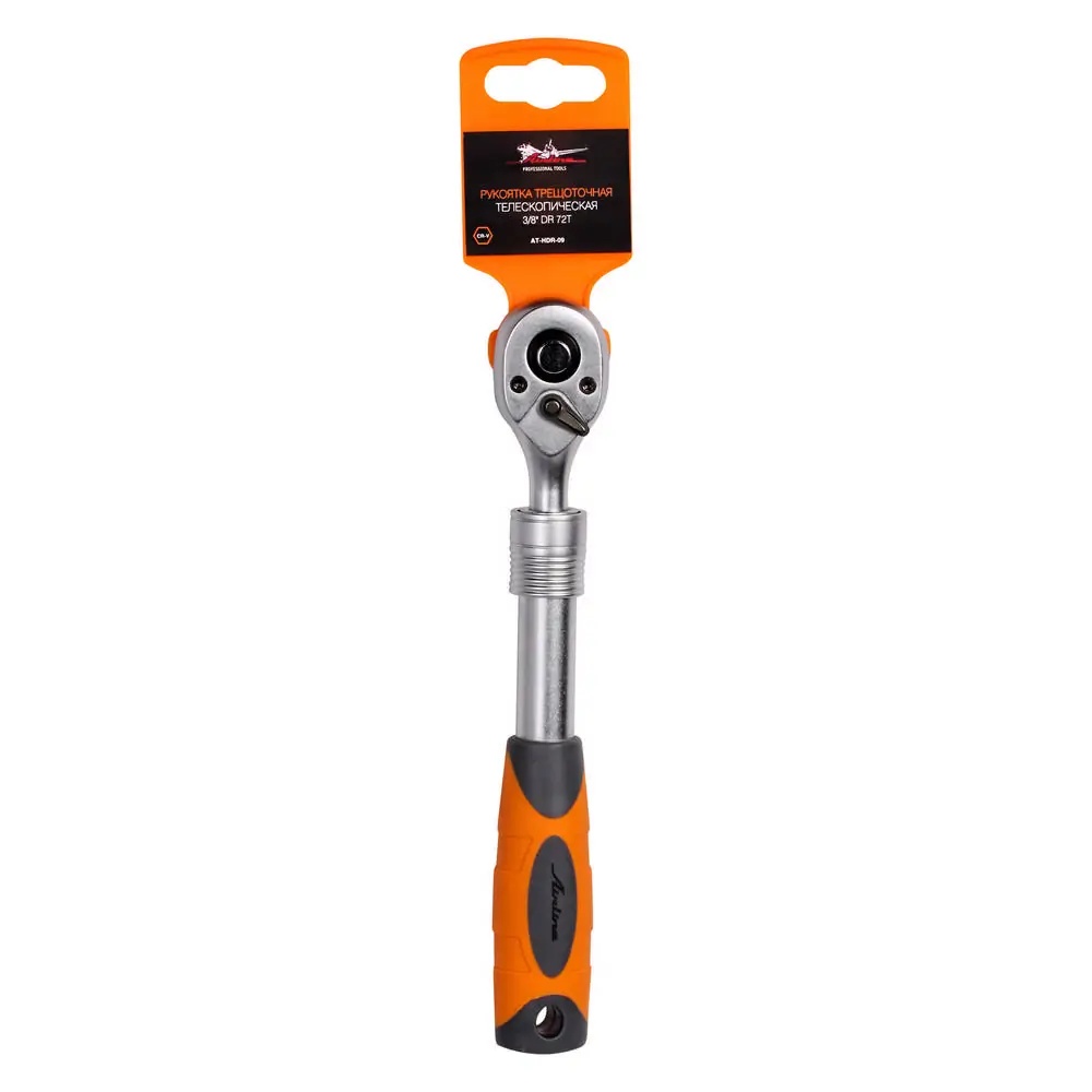 | Наименование | Рукоятка трещоточная телескопическая 3/8 DR 72T 220-320мм (AT-HDR-09) |