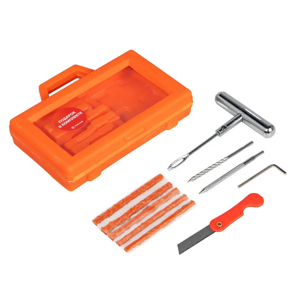 ATRK109 AIRLINE Ремкомплект для б/к шин в кейсе (шило для жгута + напильник + спиральное, 5 жгут