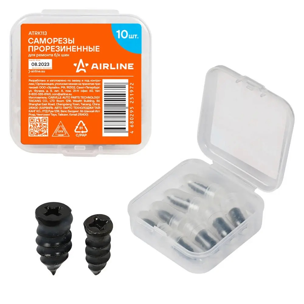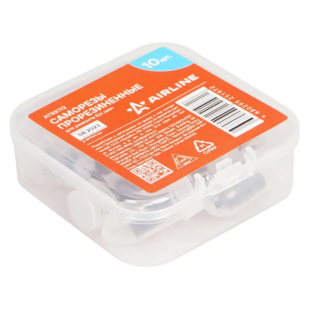 | Наименование | Набор для ремонта бескамерных шин (прорезиненные саморезы 10шт.) AIRLINE |