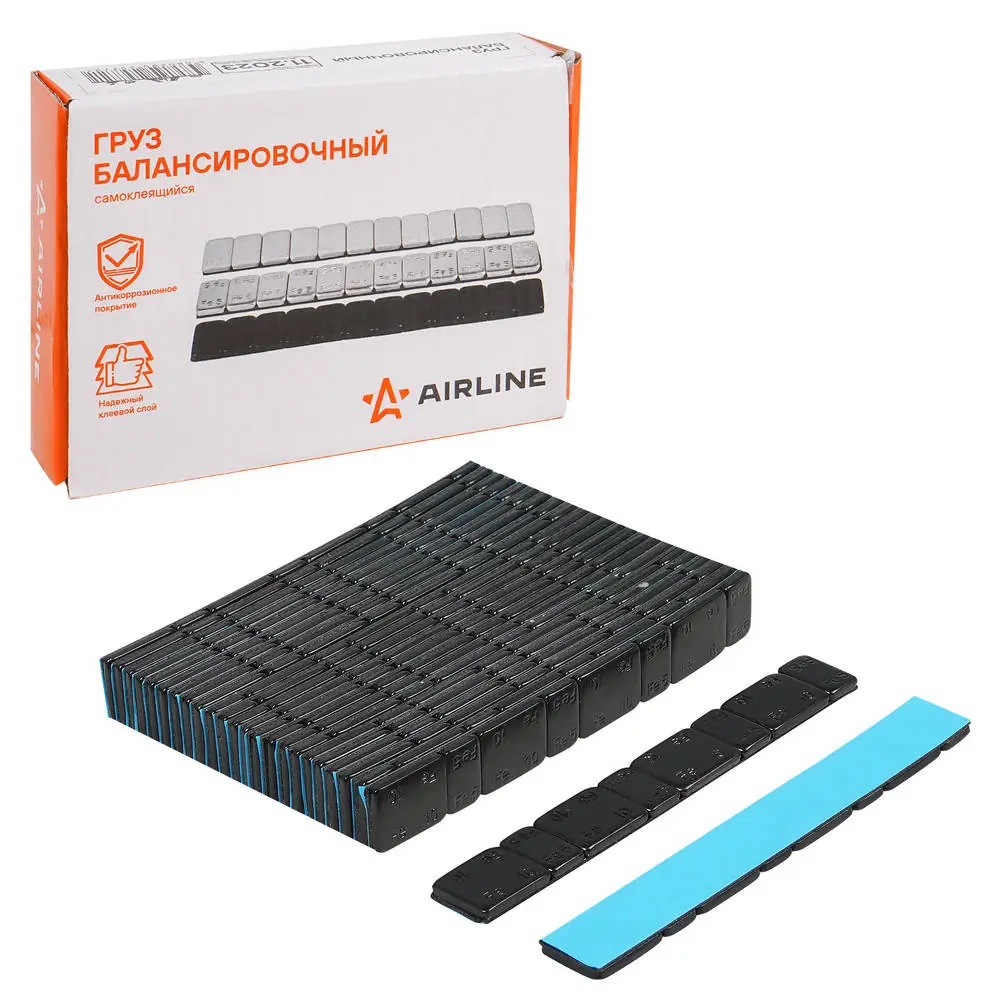 ATRK188 AIRLINE Груз балансировочный самоклеящийся стальной 4*5гр/4*10гр, 50 шт., черный (ATRK18