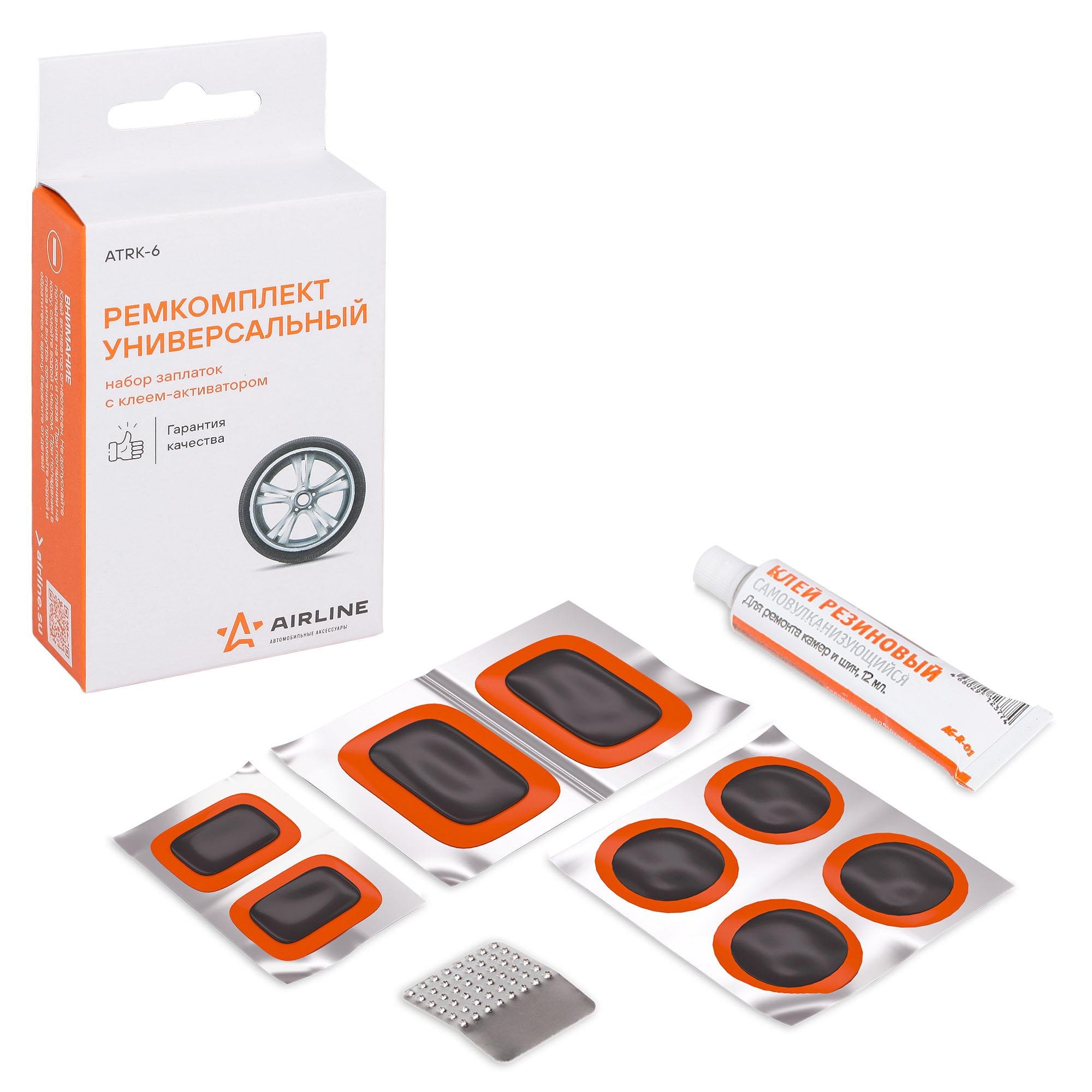ATRK-6 AIRLINE Набор для ремонта камер (заплатки 25x25, 52x32, 35x24, нж бумага, клей-активатор