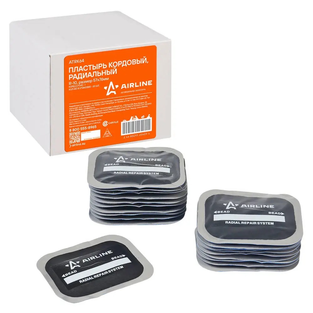 ATRK64 AIRLINE Заплатка для камер R-10 (Пластырь резинокордный 57x76 мм), 1 слой корда упак.(1