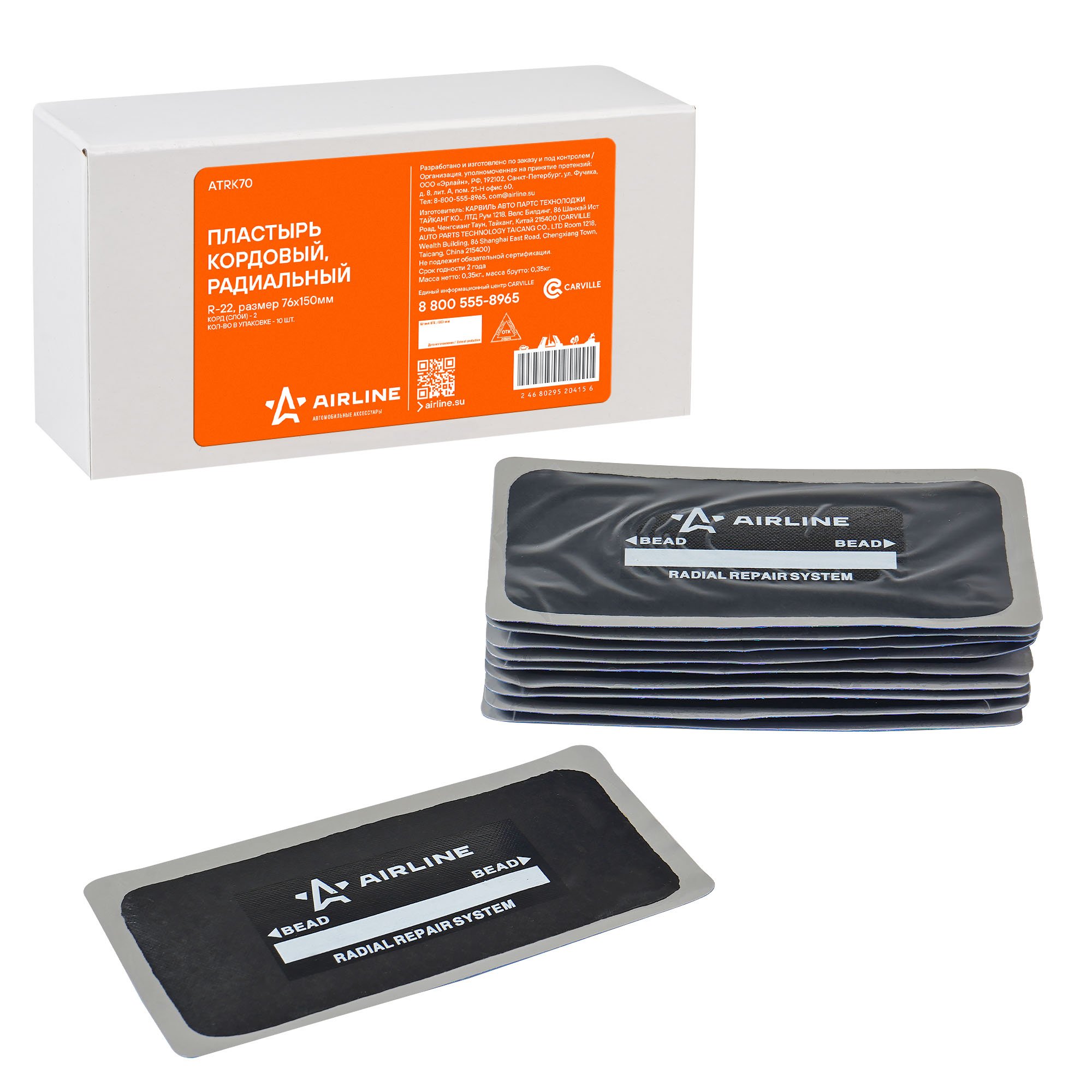 ATRK70 AIRLINE Пластырь кордовый, радиальный R-22 (76*150 мм) (ATRK70)