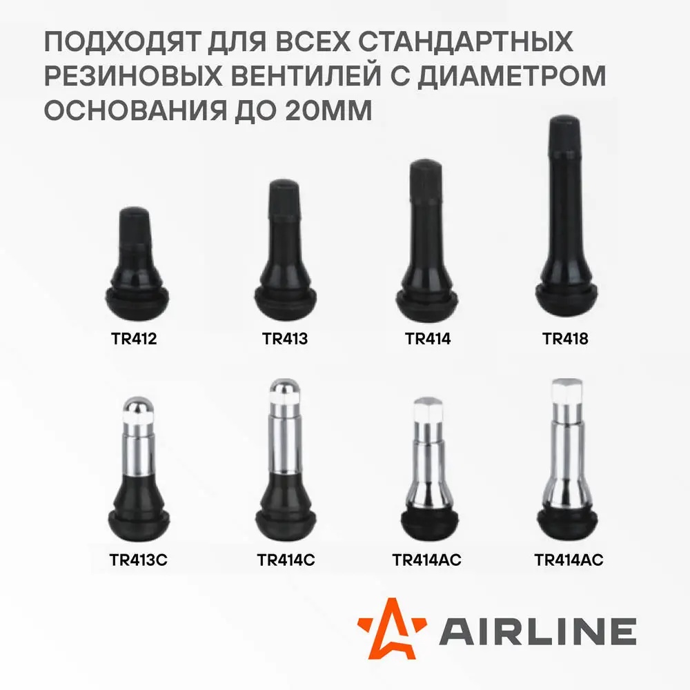 | Наименование | Набор для замены вентиля без снятия шины 8 предметов AIRLINE |