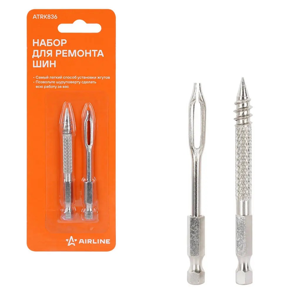 ATRK836 AIRLINE Инструмент для ремонта б/к шин для шуруповерта (сверло-напильник, шило для жгута