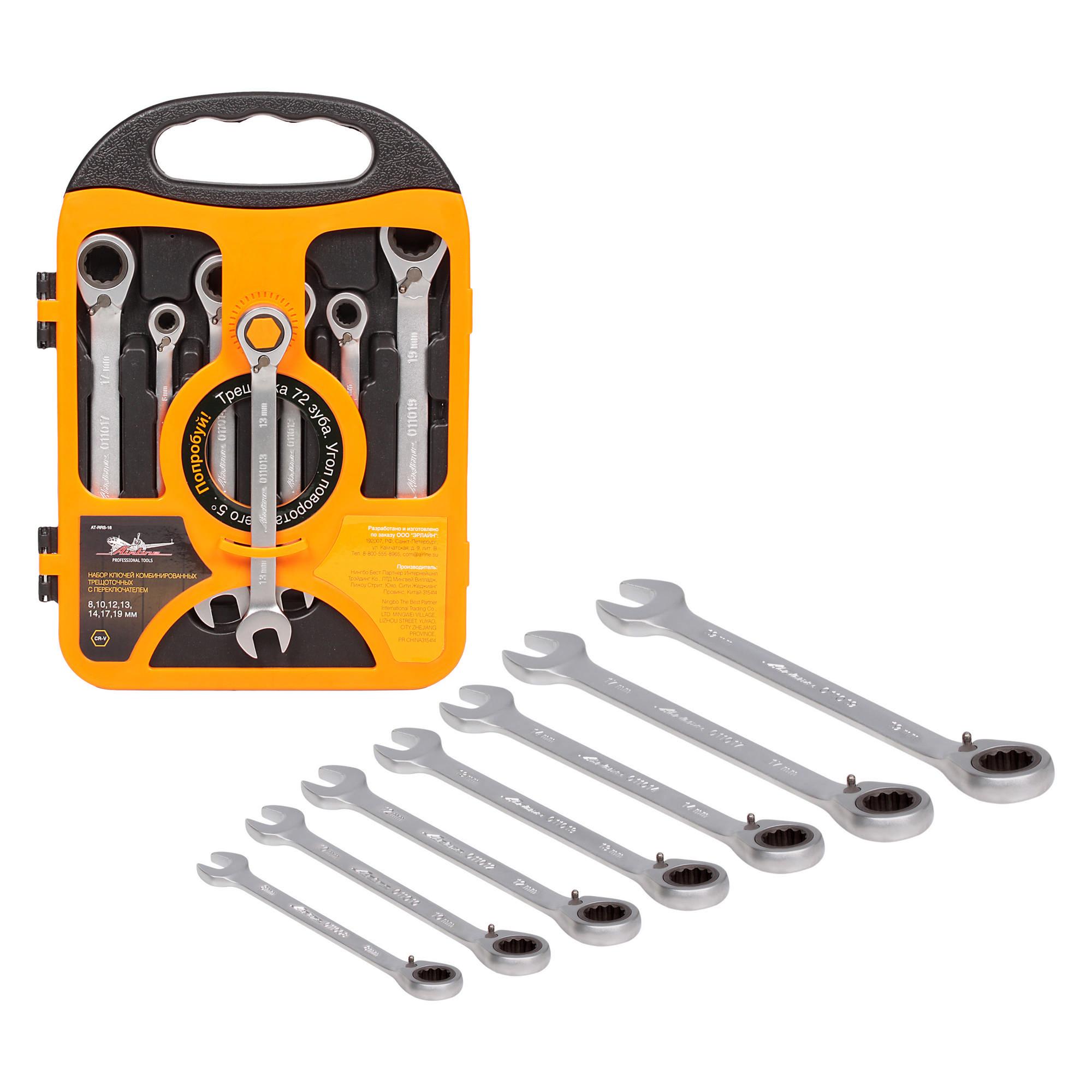 ATRRS16 AIRLINE Набор ключей комбинир. трещоточ. с переключ. 7 предм. (8,10,12,13,14,17,19мм) пл
