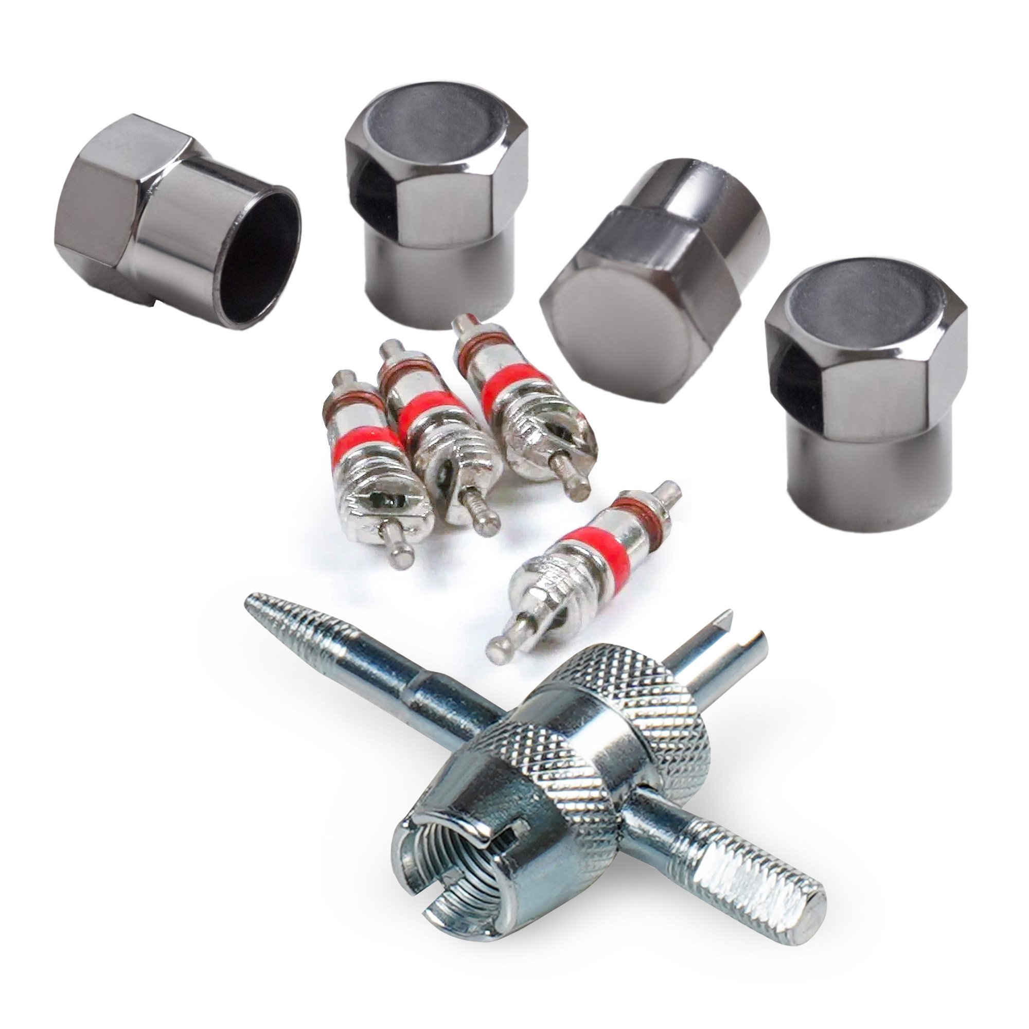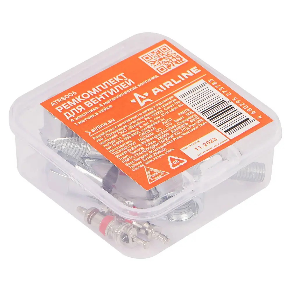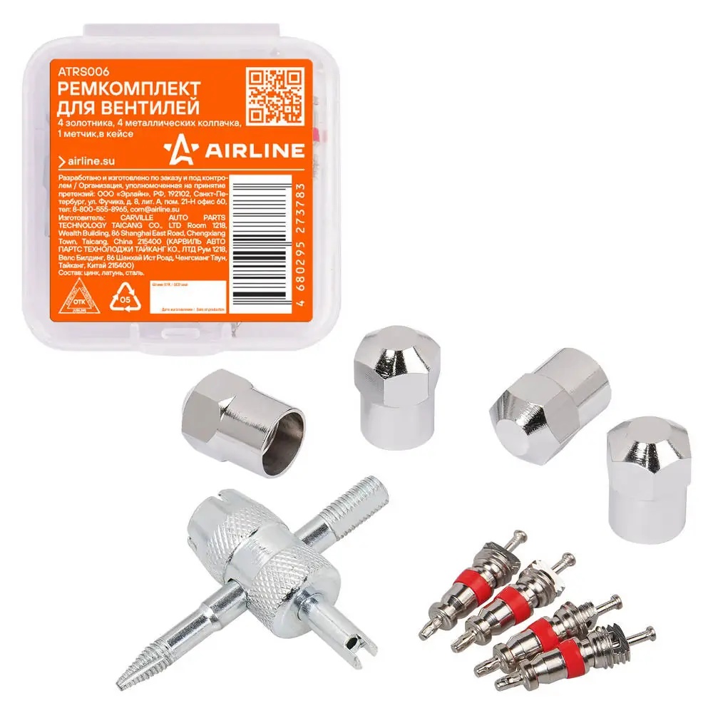 ATRS006 AIRLINE ATRS006 Ремкомплект для вентилей (4 золотника, 4 металл.колп, 1 метчик) в кейсе