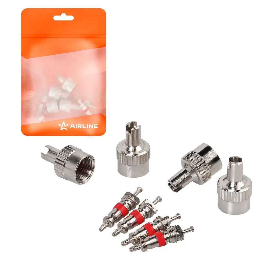 ATRS013 AIRLINE Ремкомплект для вентилей (4 золотника, 4 металл.колп. с ключом) в пакете (ATRS01