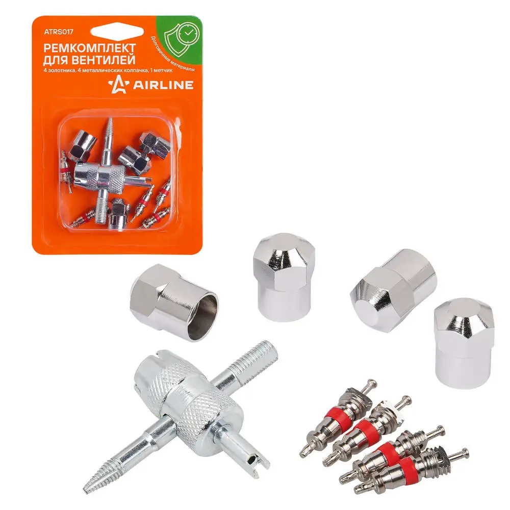 ATRS017 AIRLINE Набор для ремонта вентиля колеса (4 золотника,4 металл.колпачка,1 метчик) AIRLIN