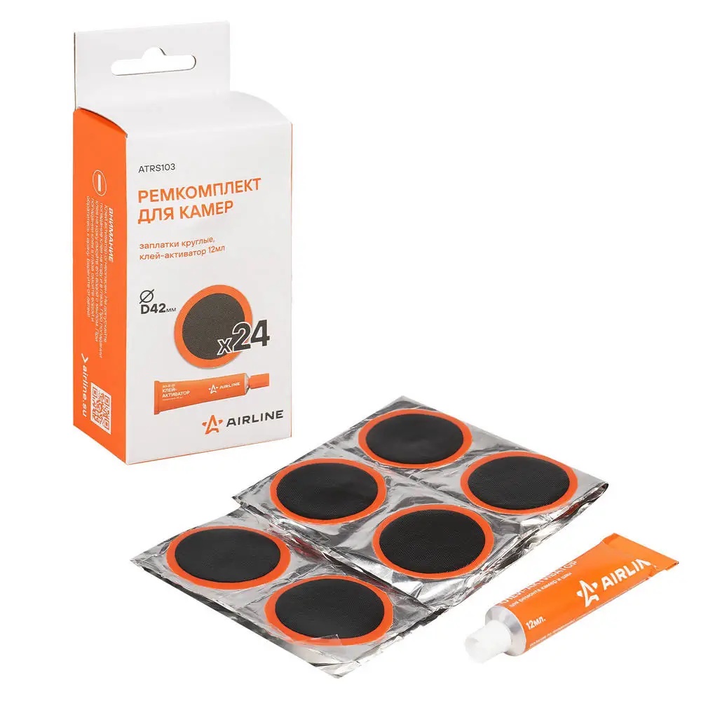 ATRS103 AIRLINE Ремкомплект для бескамерных шин "AIRLINE" (заплатки круглые d42 мм, клей активат