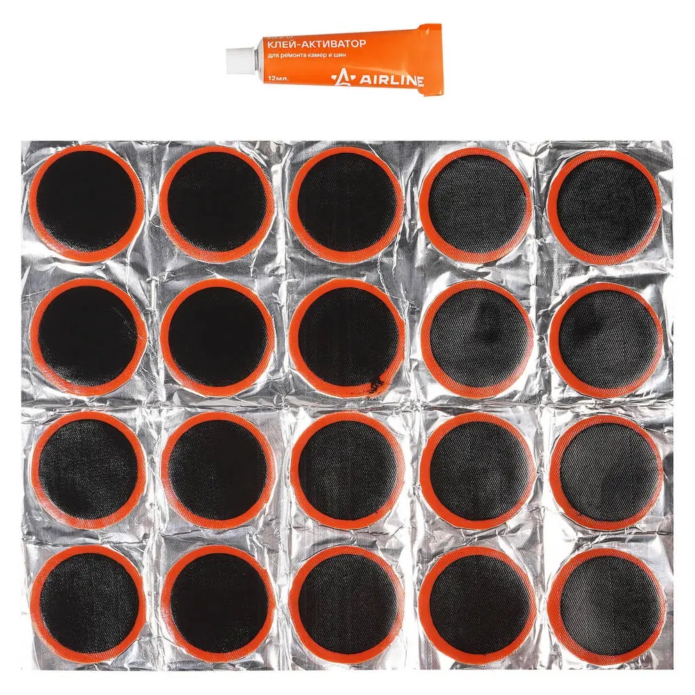 | Наименование | Ремкомплект для бескамерных шин "AIRLINE" (заплатки круглые d42 мм, клей активат |