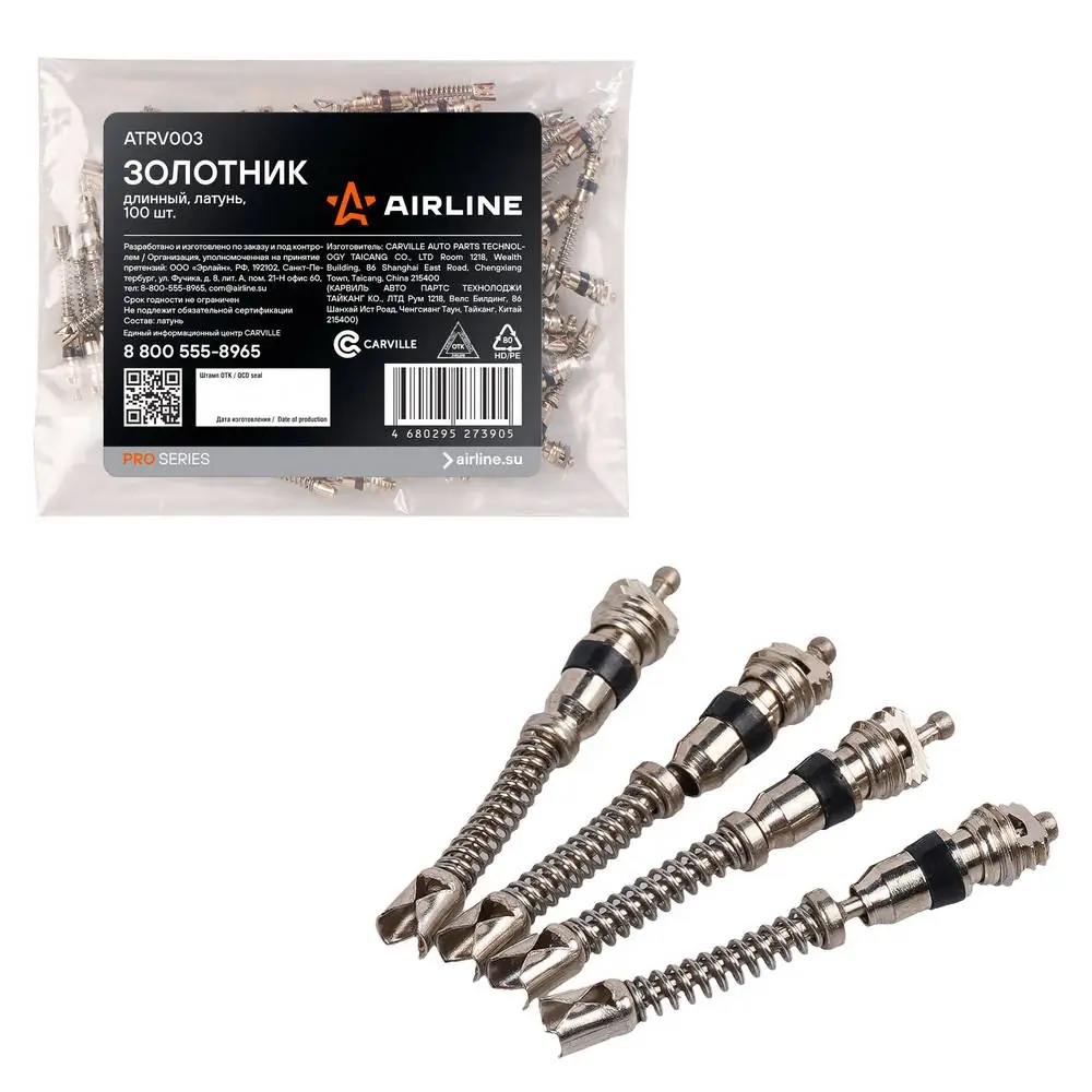 ATRV003 AIRLINE Золотник (ниппель) длинный PRO, латунь, 100 шт. (ATRV003)