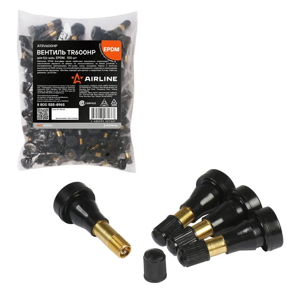 ATRV600HP AIRLINE Вентиль для б/к шин TR600HP неразбор. D-11,3mm L-45mm 5,5 Bar повышен. давлен