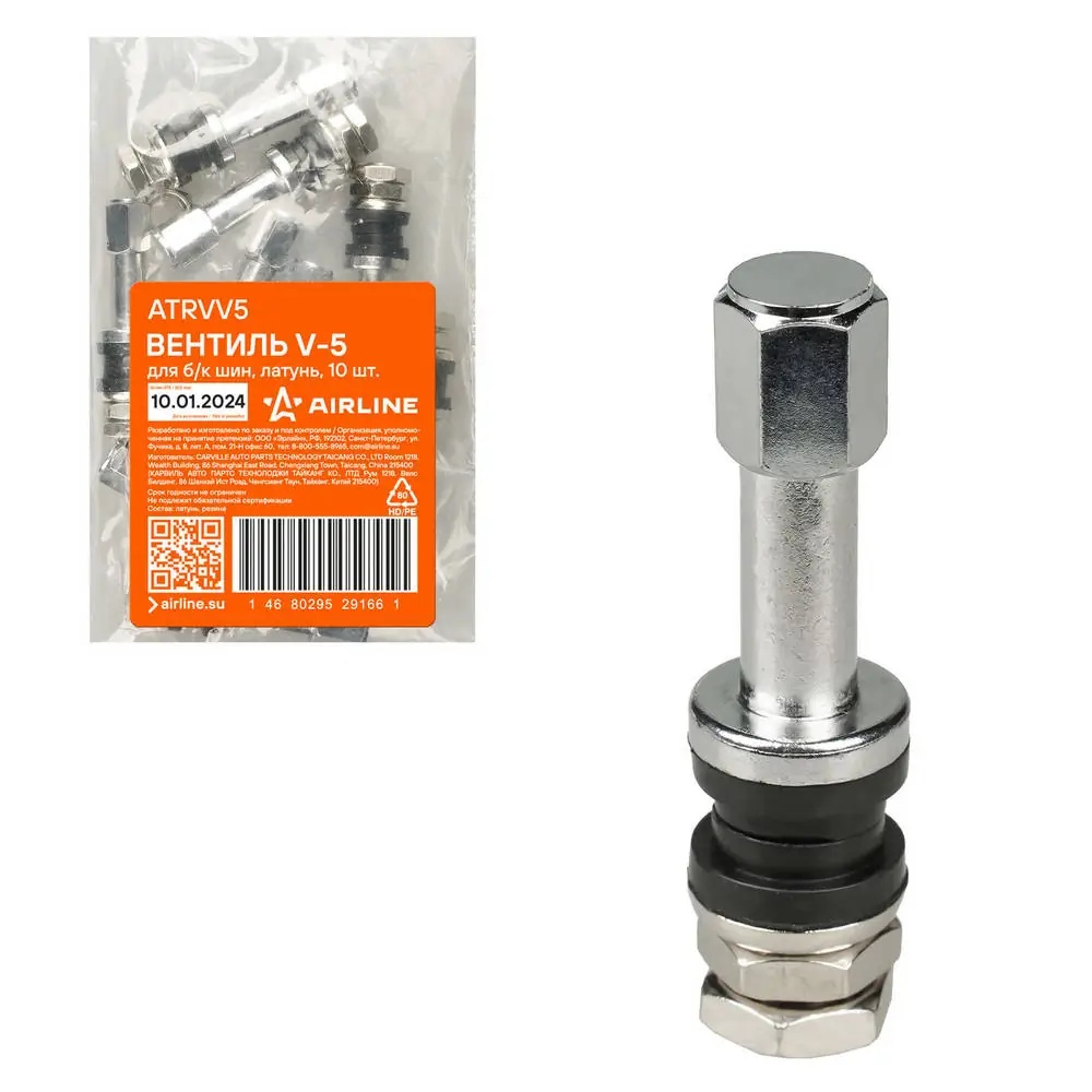 ATRVV5 AIRLINE Вентиль для б/к шин V-5 разбор. D-11,5mm L-48mm 14 Bar 4шт