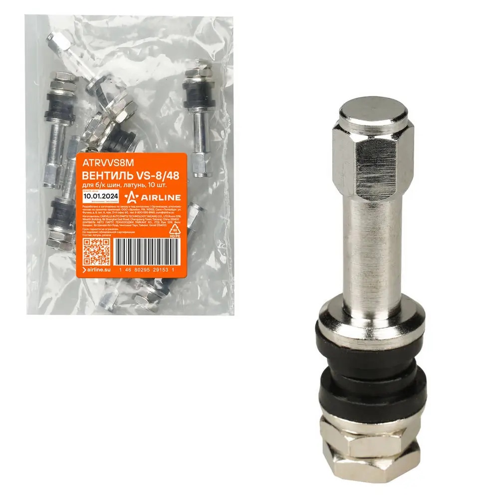 ATRVVS8M AIRLINE Вентиль для б/к шин VS-8/48 разбор. D-11,5mm L-48mm 14 Bar 4шт