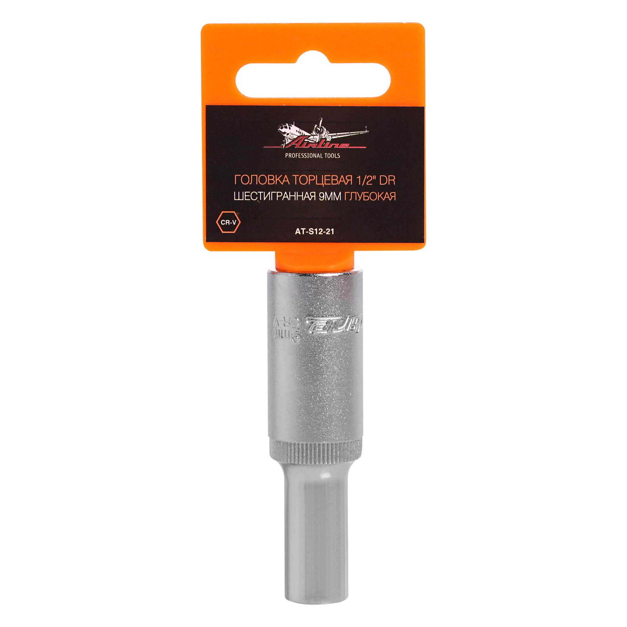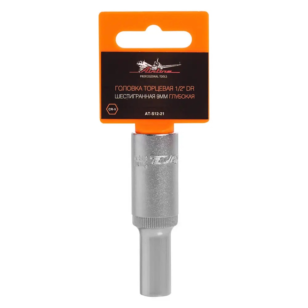 AT-S12-21 AIRLINE Головка торцевая 1/2" ( 9) "AIRLINE" (6 граней, высокая) пласт. подвес