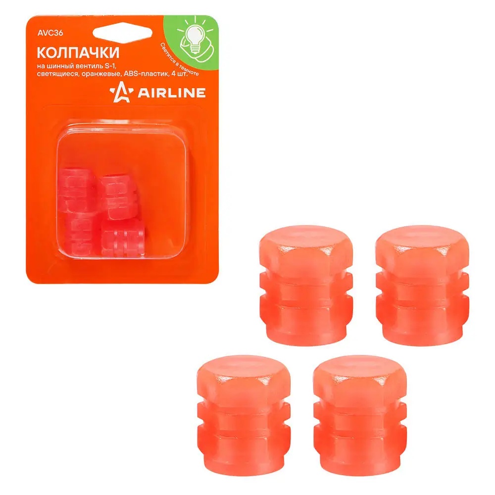 AVC36 AIRLINE Колпачок камеры S-1 (светящиеся, оранжевые, ABS-пластик) 4 шт.