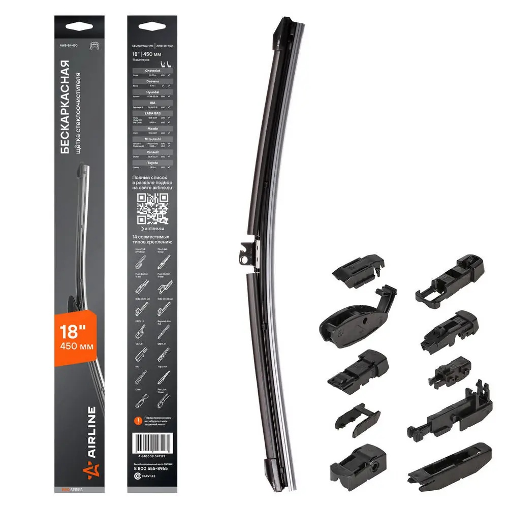 AWB-BK-450 AIRLINE Щетка стеклоочистителя бескаркасная 450мм (18") AWB-BK-450