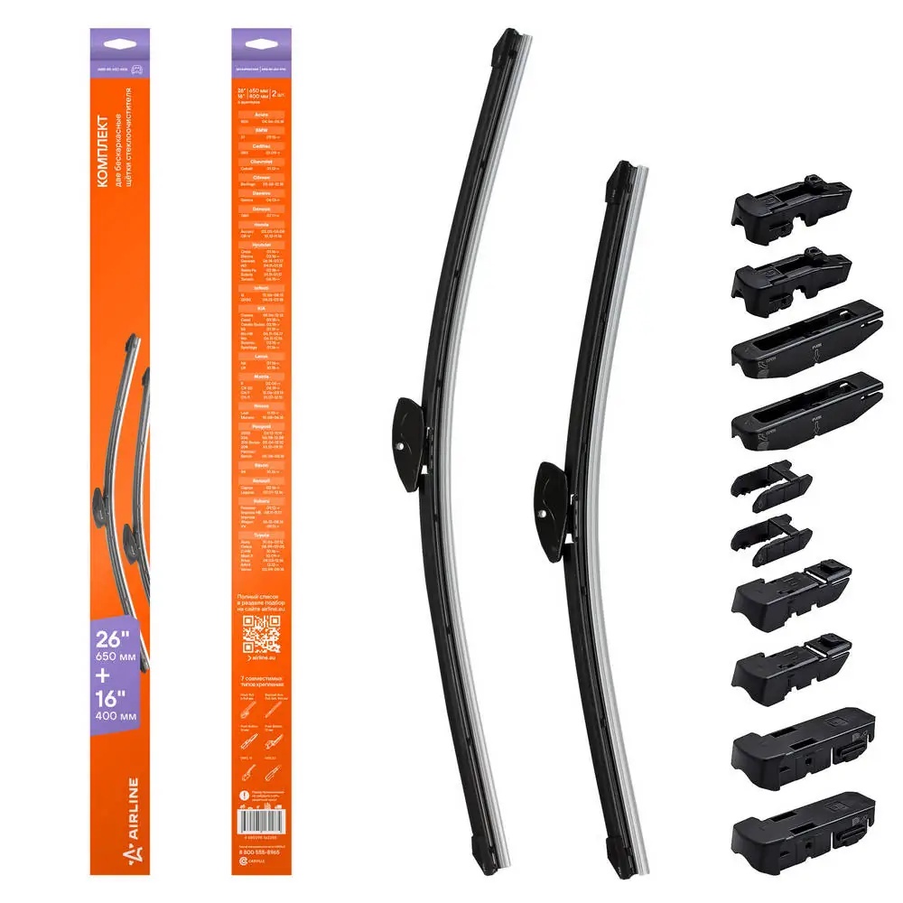 AWB-BK-650-410K AIRLINE Щетки стеклоочистителя 650,410мм 26,16 бескаркасные,X1 15-,Creta 16-,Rio 11,16,M