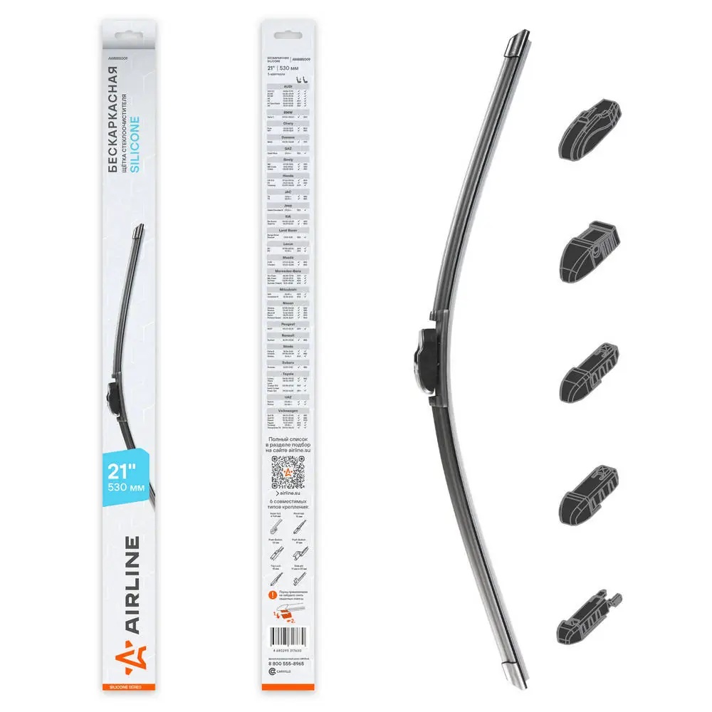AWBBS009 AIRLINE Щетка стеклоочистителя бескаркасная Silicone 530мм 5 адаптеров