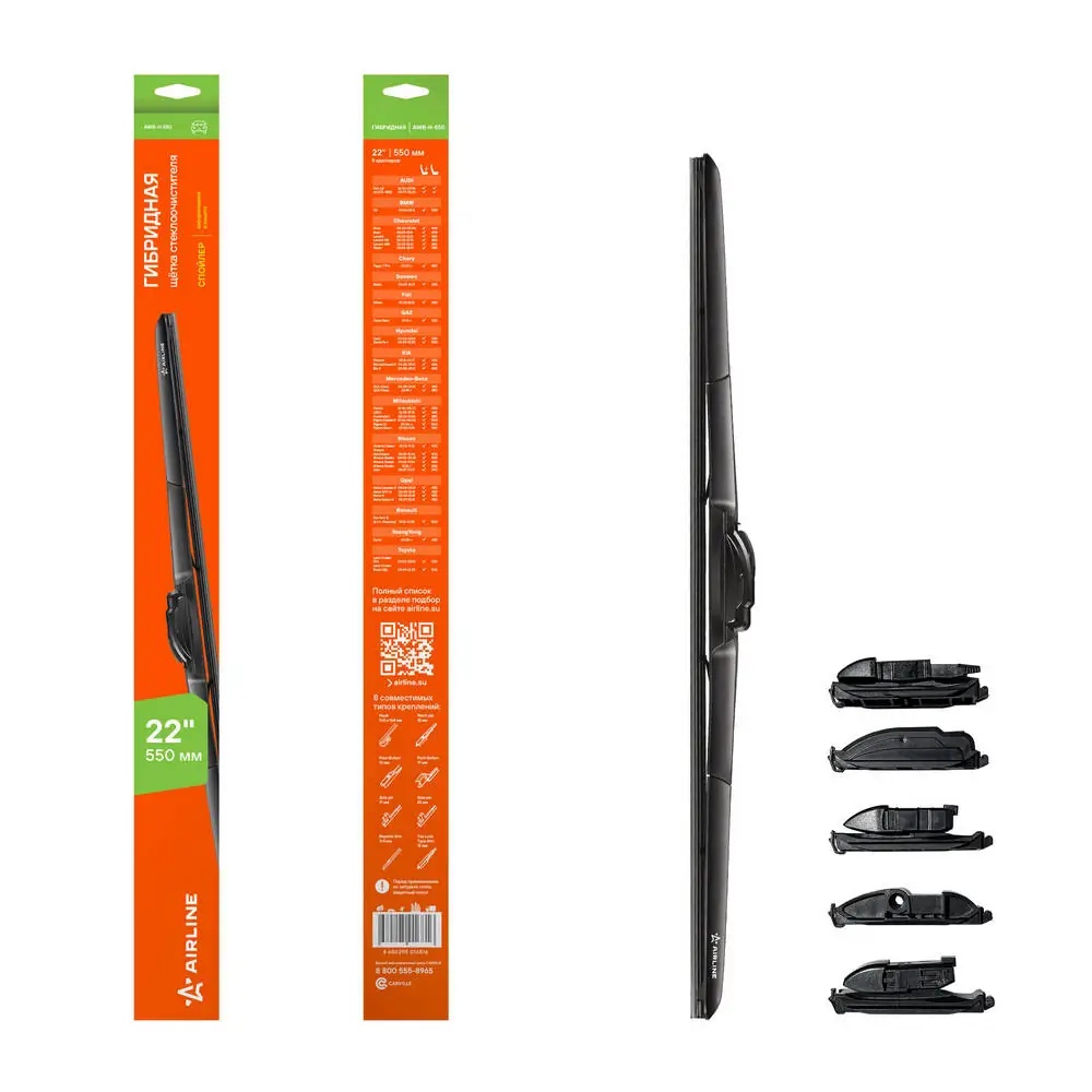 AWB-H-550 AIRLINE Щетка стеклоочистителя 550 мм (22) гибридная, 8 адаптеров AWB-H-550