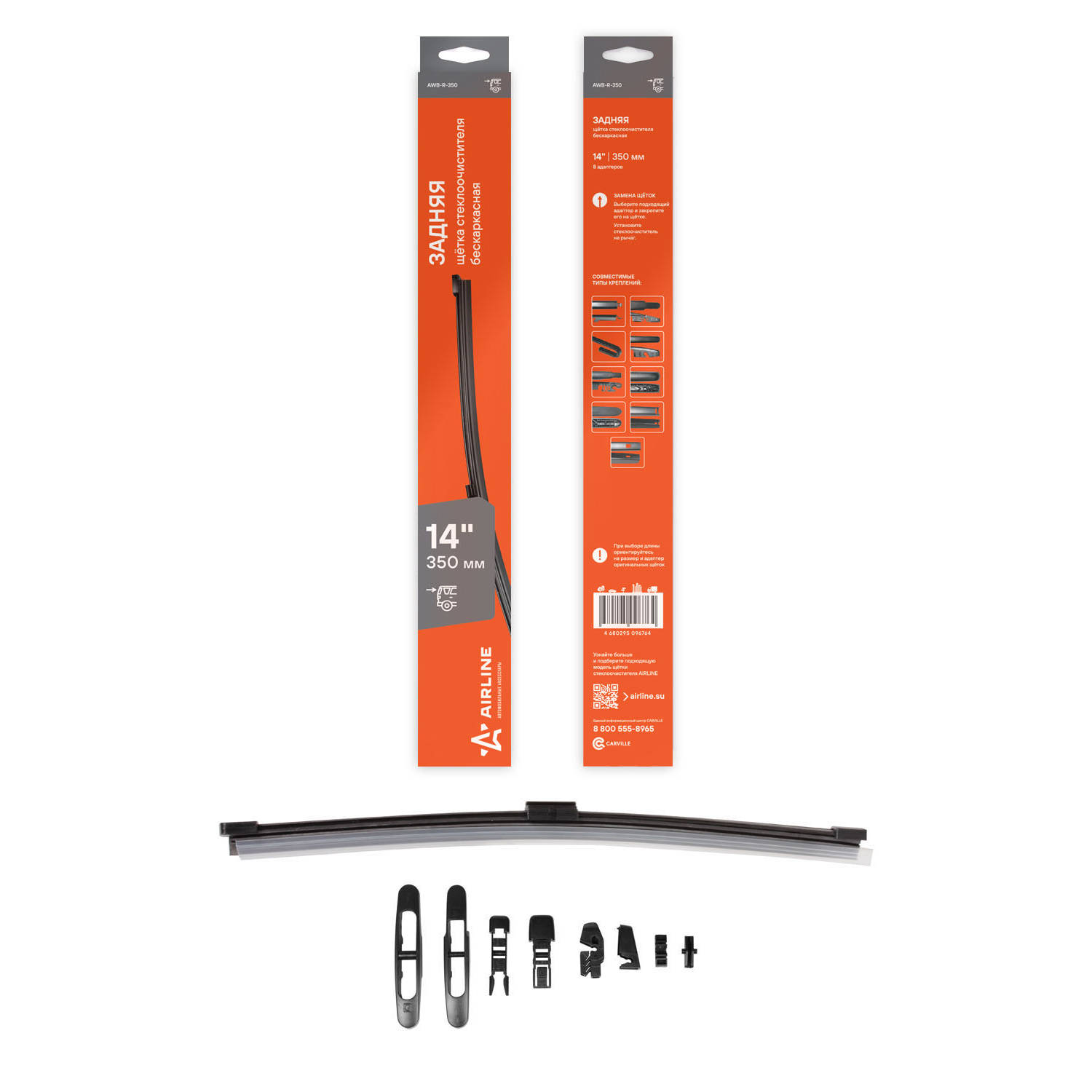 | Наименование | Щетка стеклоочистителя задняя бескаркасная 350мм (14) 8 адаптеров |