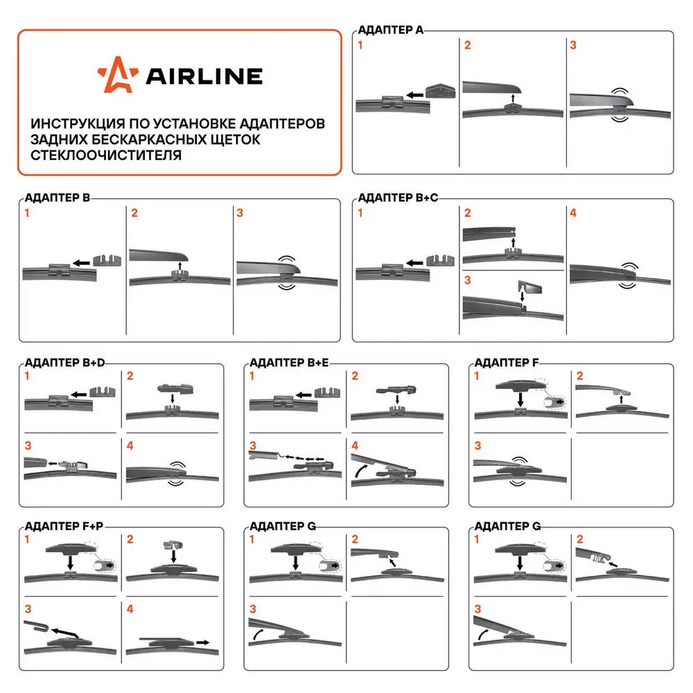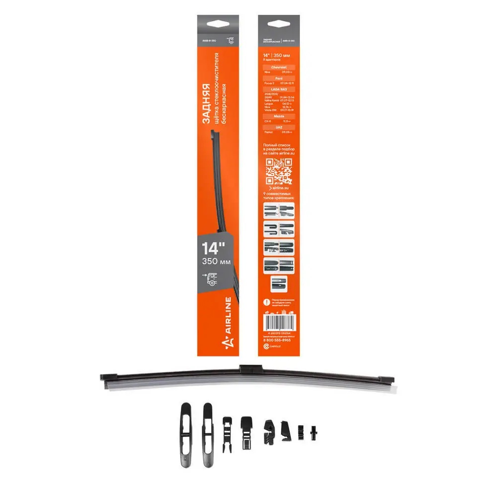 AWB-R-350 AIRLINE Щетка стеклоочистителя задняя бескаркасная 350мм (14) 8 адаптеров