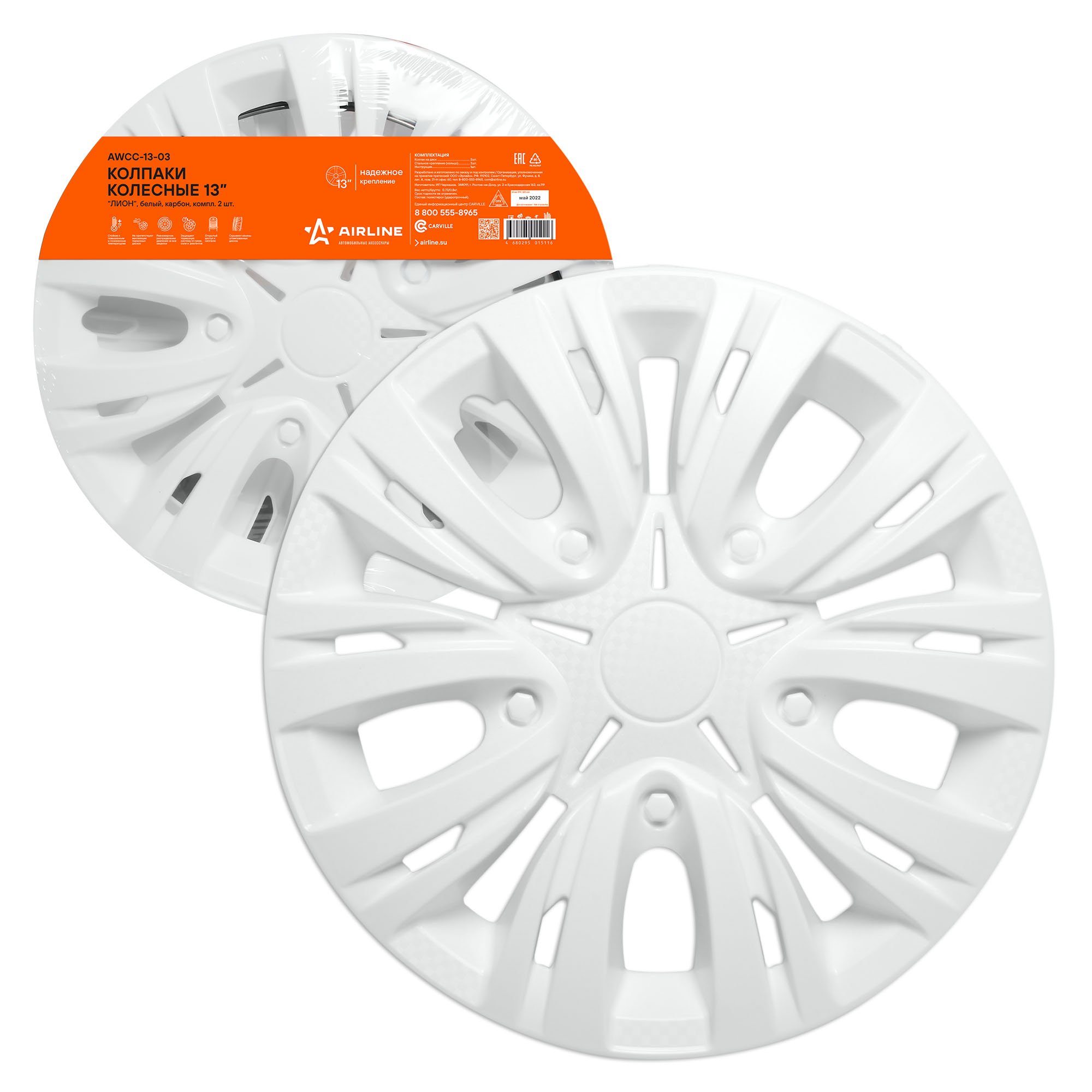 AWCC-13-03 AIRLINE Колпаки колесные декоративные R13 белый "AIRLINE" Лион (2 шт.) (карбон)