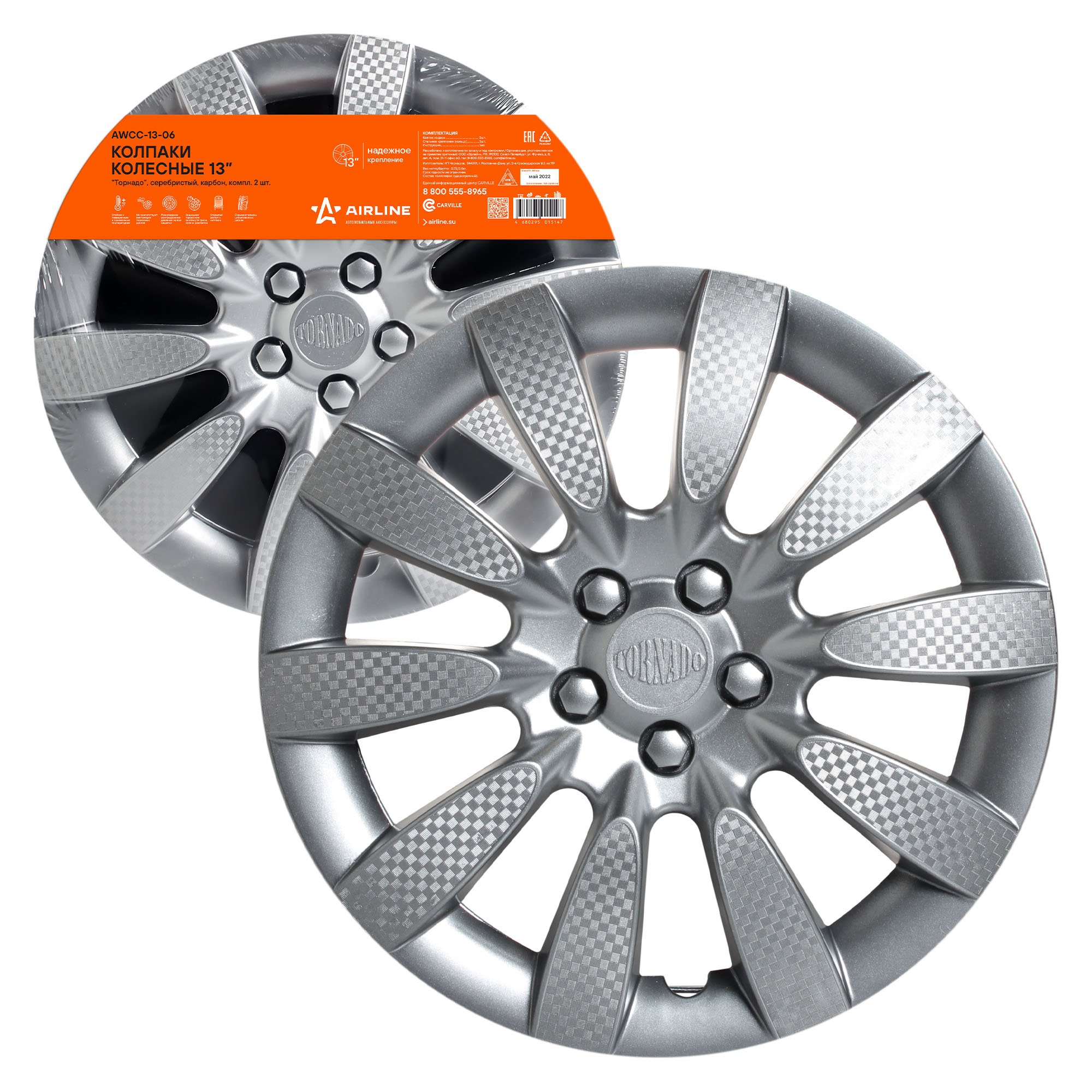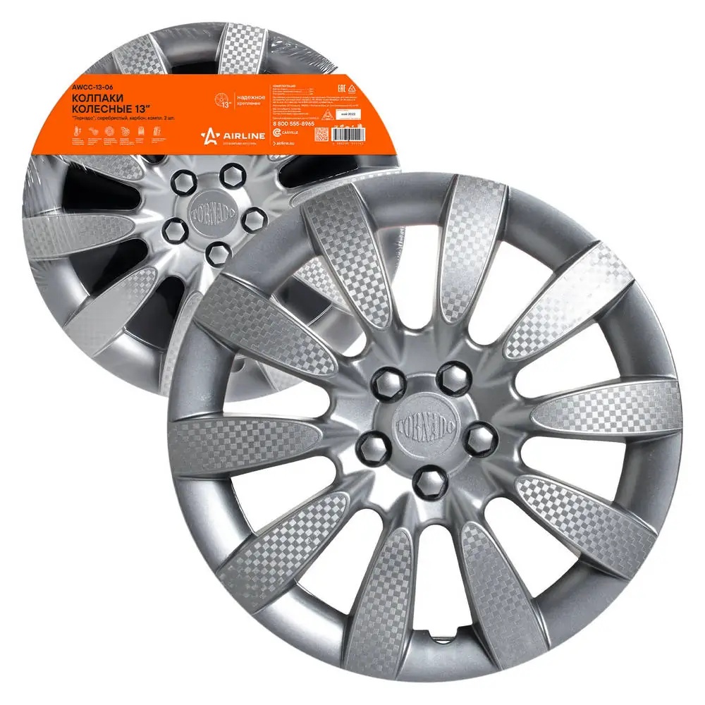 AWCC-13-06 AIRLINE Колпаки колесные Торнадо 13" (серебристый/карбон, 2шт) AWCC-13-06