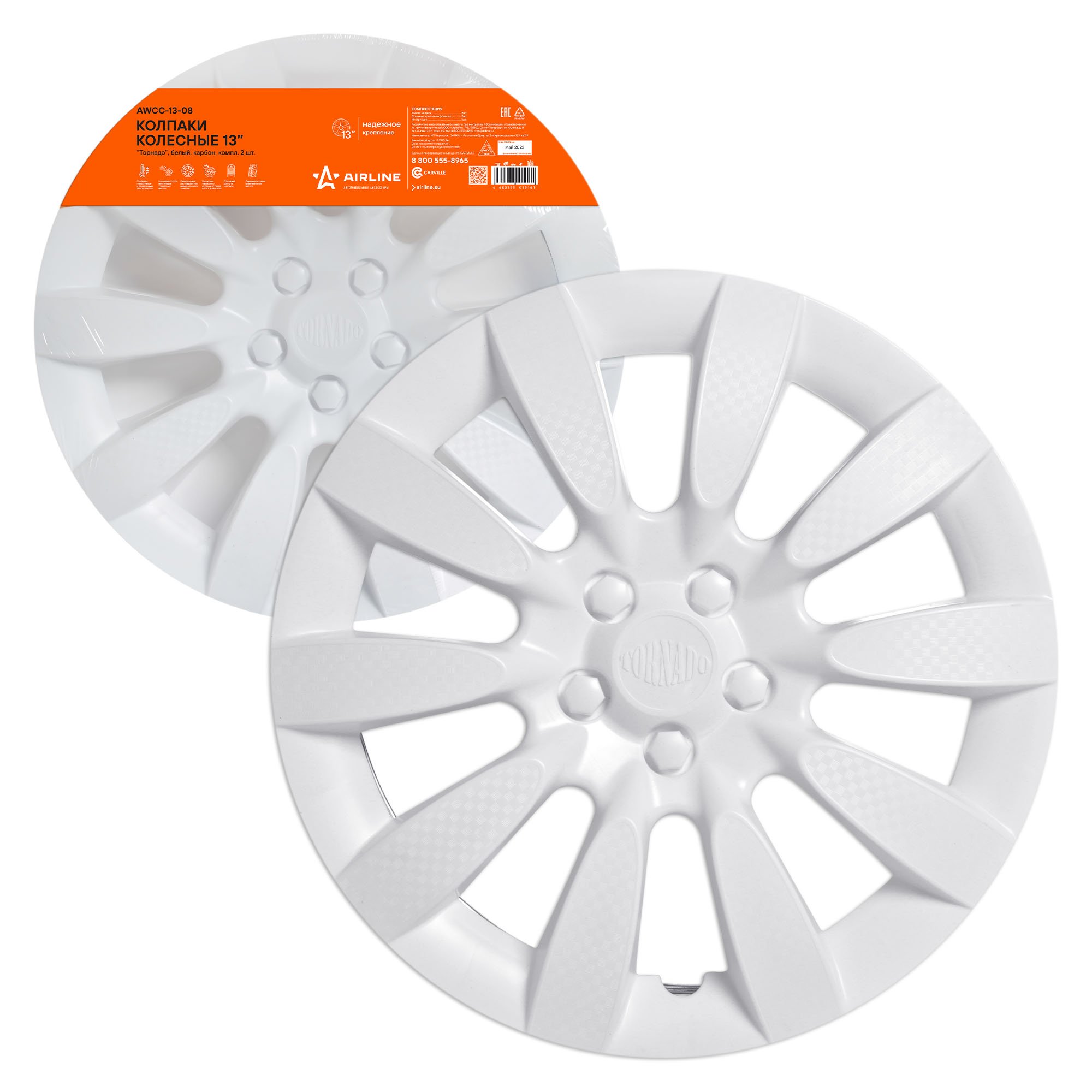 AWCC-13-08 AIRLINE Колпаки колесные декоративные R13 белый "AIRLINE" Торнадо (2 шт.)