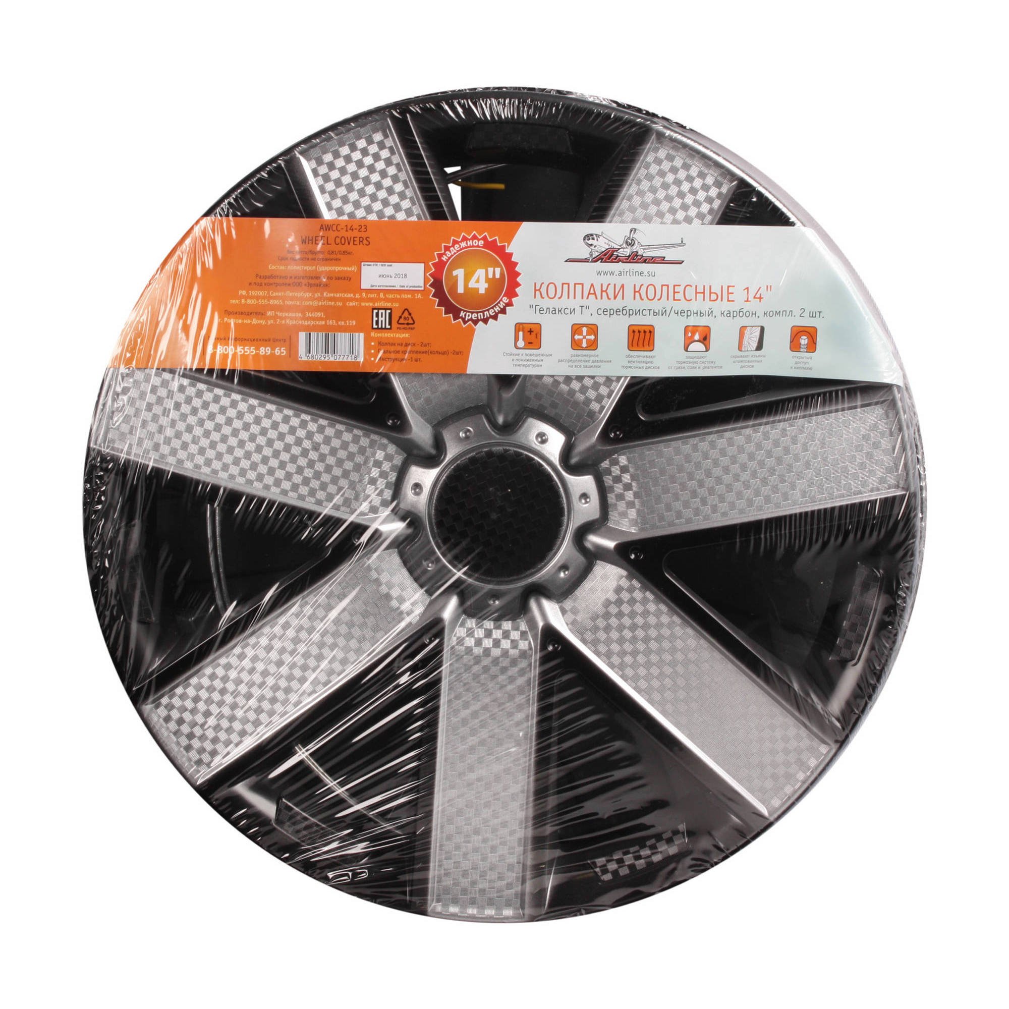 AWCC-14-23 AIRLINE Колпаки колесные декоративные R14 серебро/черный/карбон "AIRLINE" Гелакси Т (2 ш