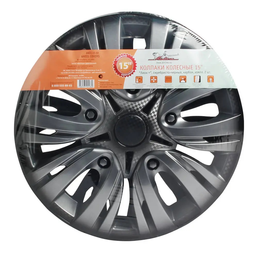 AWCC-15-02 AIRLINE Колпаки колесные 15 Лион +, серебристо-черный, карбон, компл. 2 шт. (AWCC-15-02)