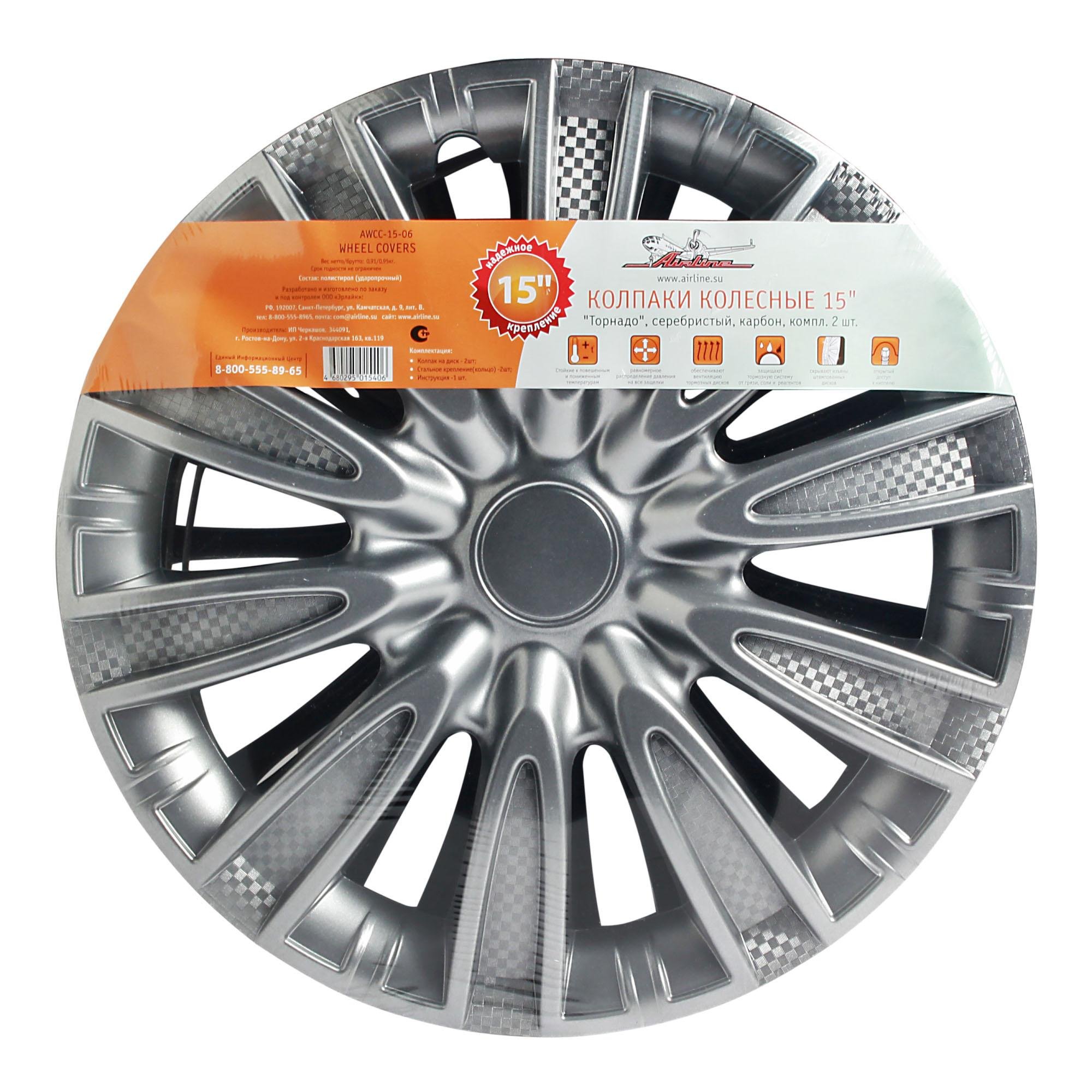 AWCC-15-06 AIRLINE Колпаки колесные 15 Торнадо, серебристый, карбон, компл. 2 шт. (AWCC-15-06)