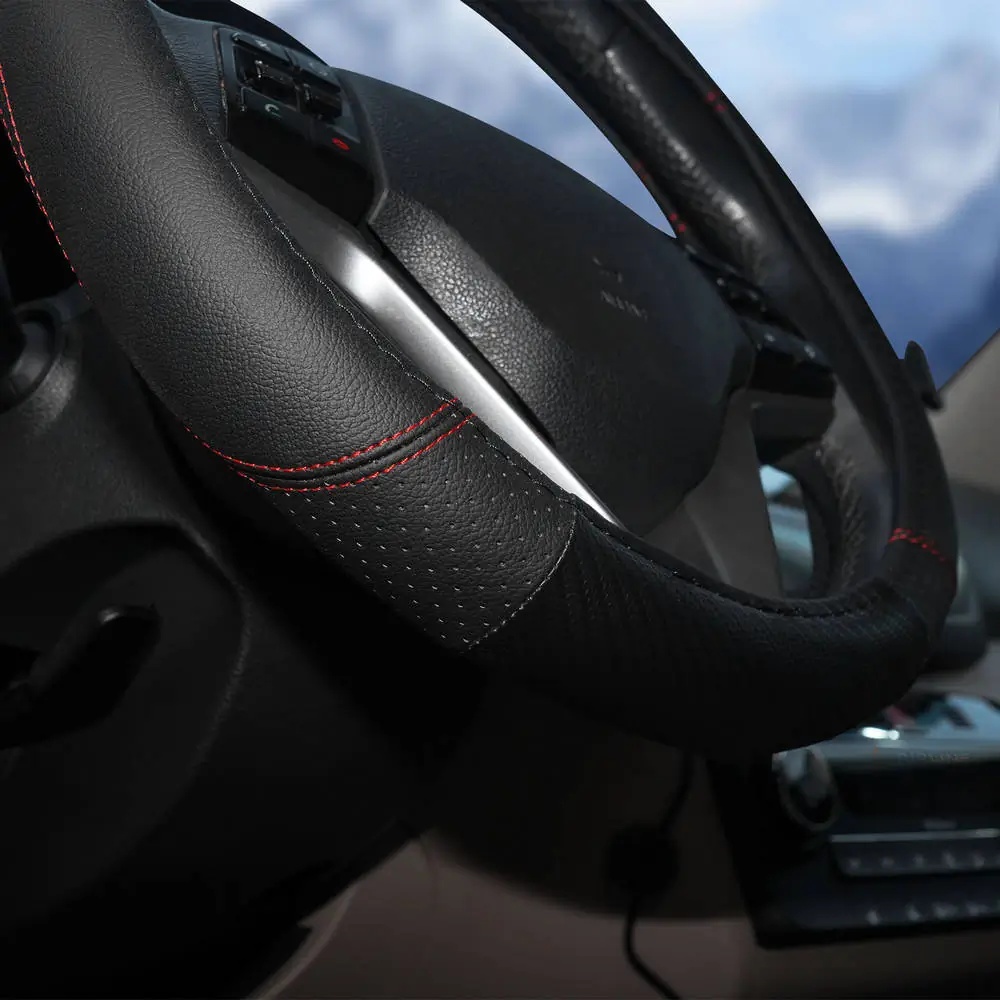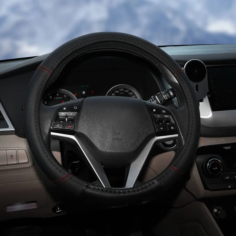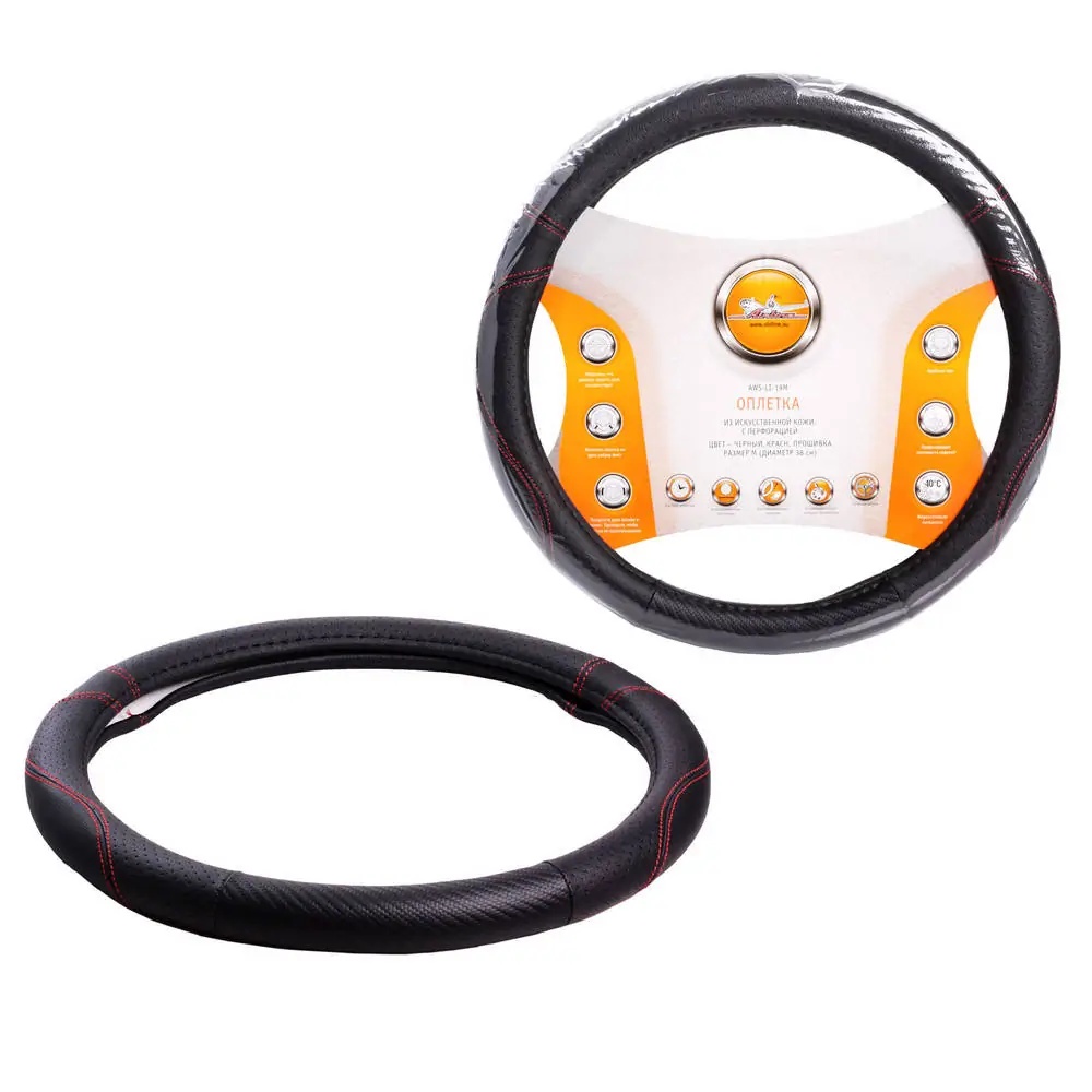 AWS-LI-19M AIRLINE Оплетка на руль (M) AIRLINE экокожа перфорация черная, красная прошивка /AIRLIN