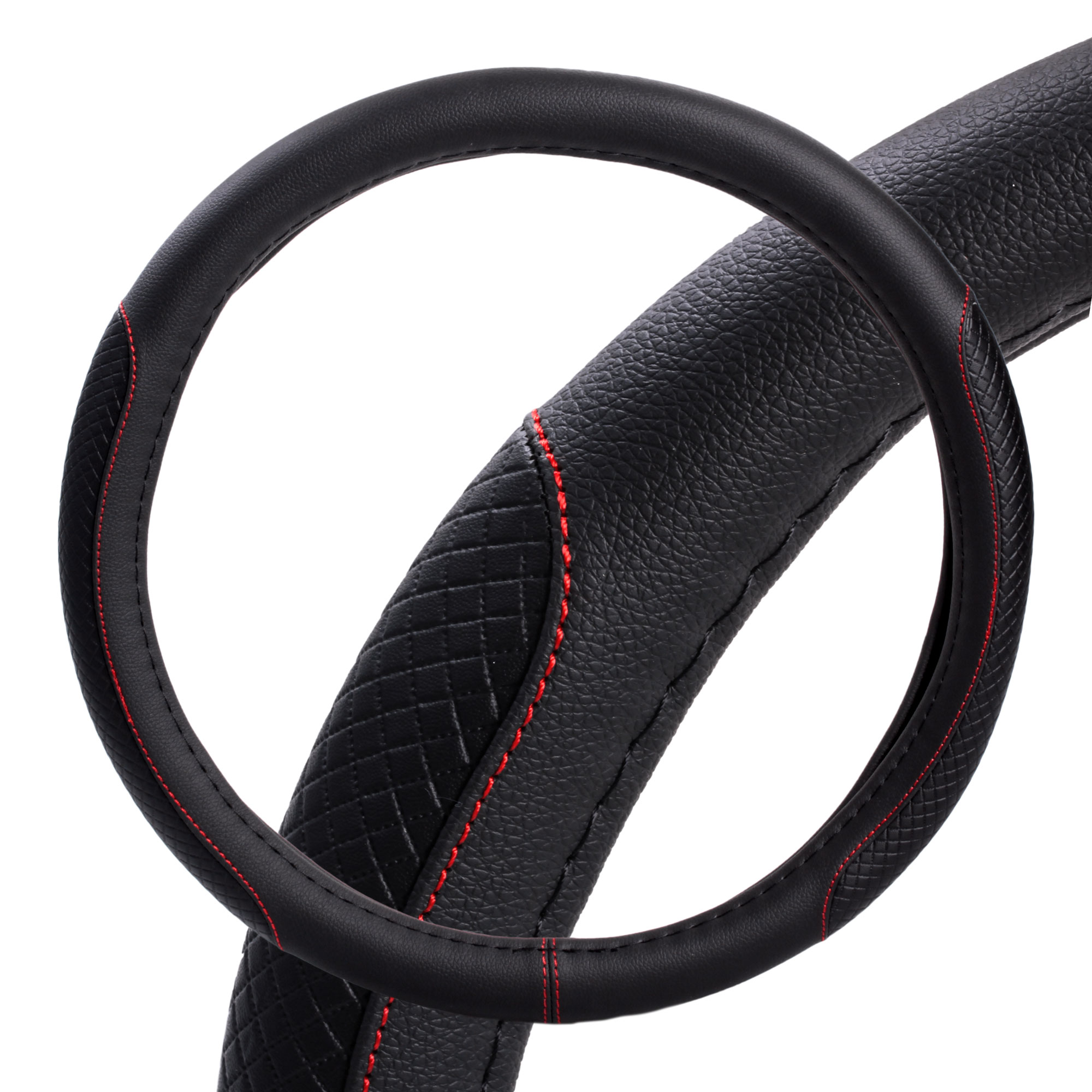 | Наименование | Оплетка на руль, искусст. кожа, с тиснением ромб , черная, красн. прошивка, 38 с |