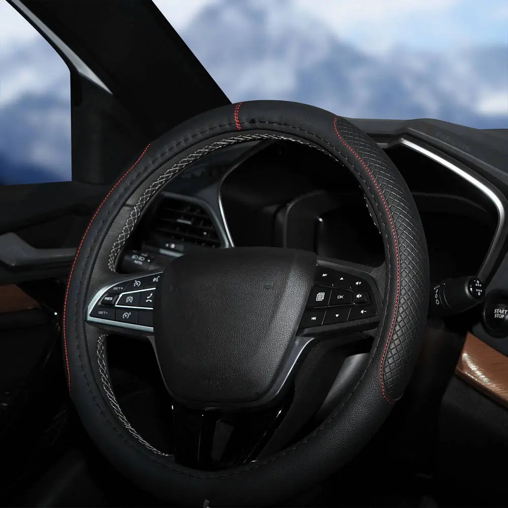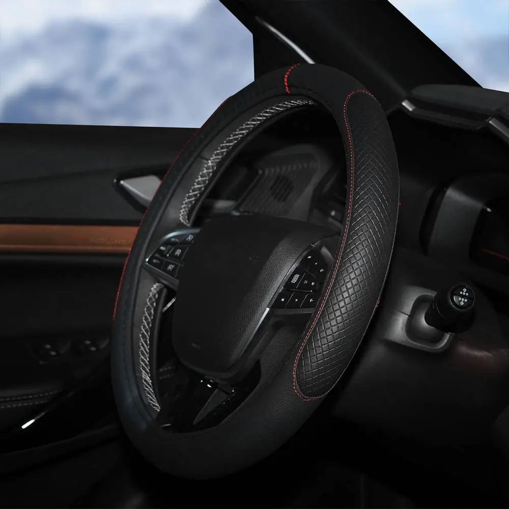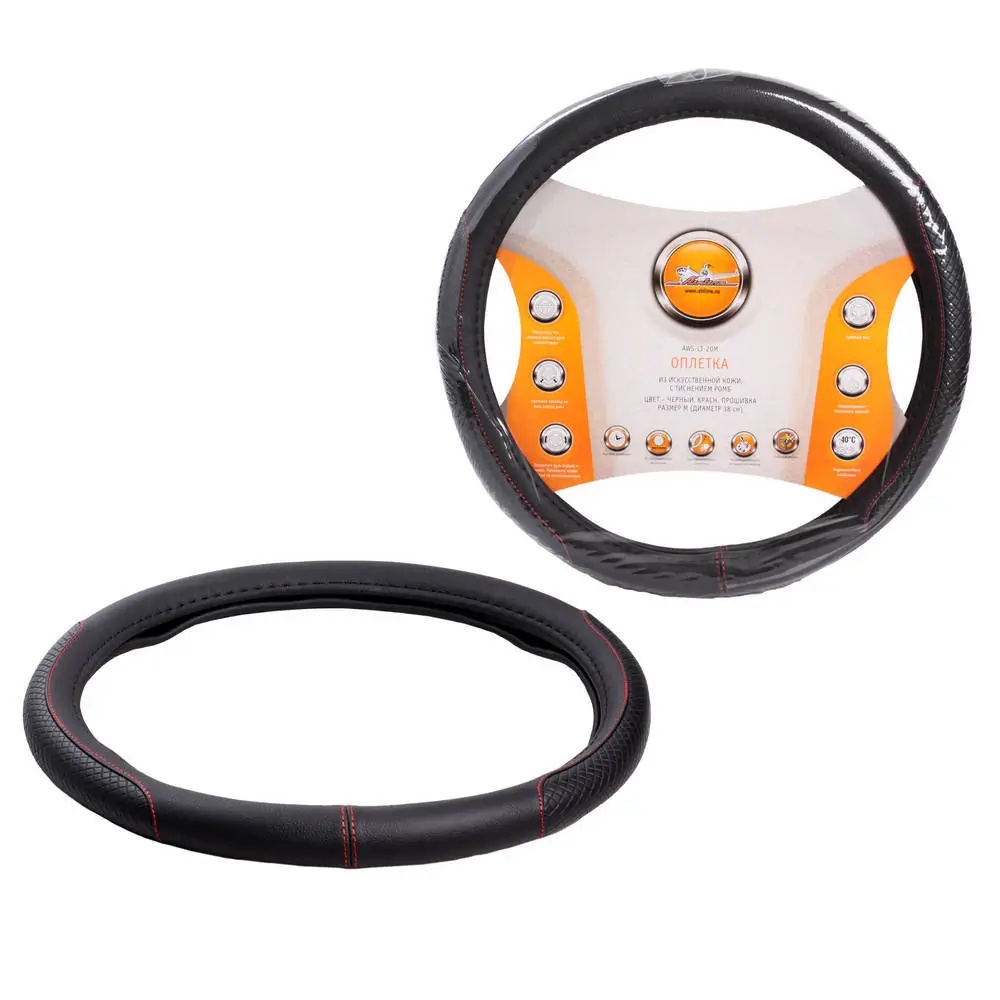 AWS-LI-20M AIRLINE Оплетка на руль, искусст. кожа, с тиснением ромб , черная, красн. прошивка, 38 с