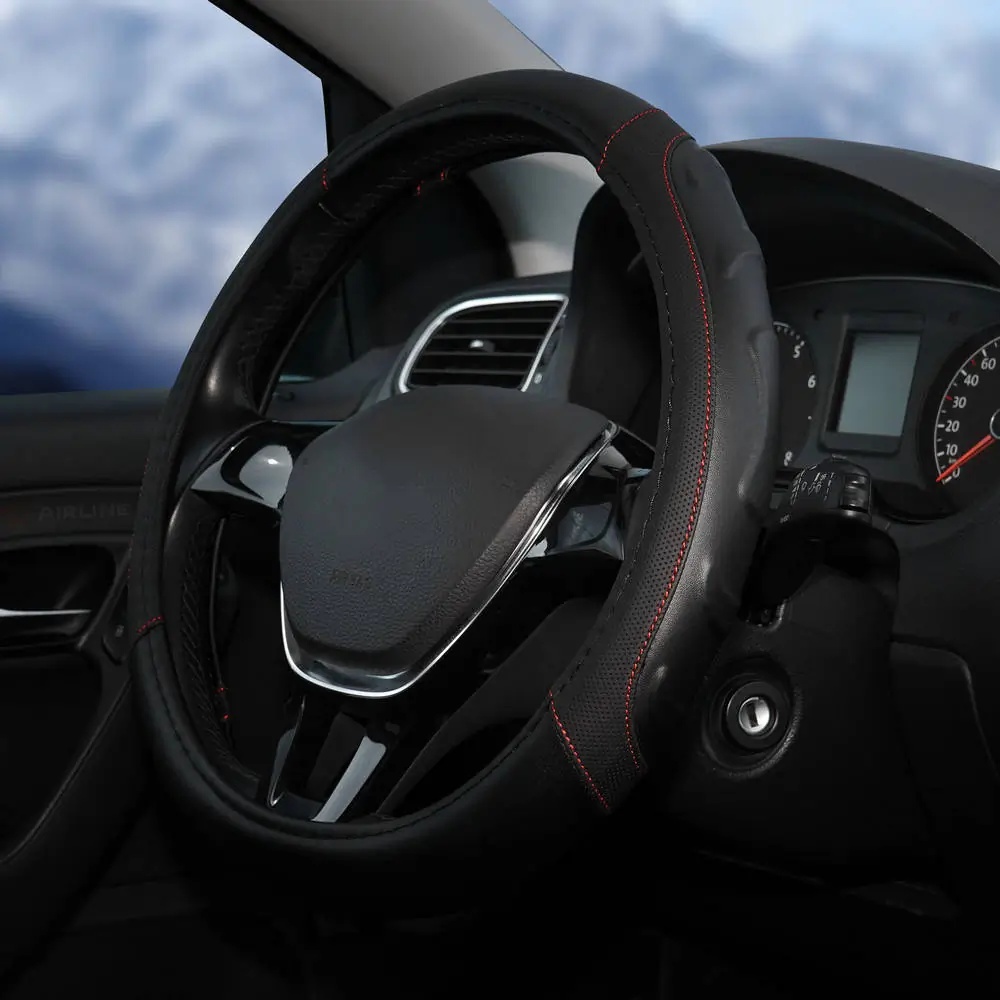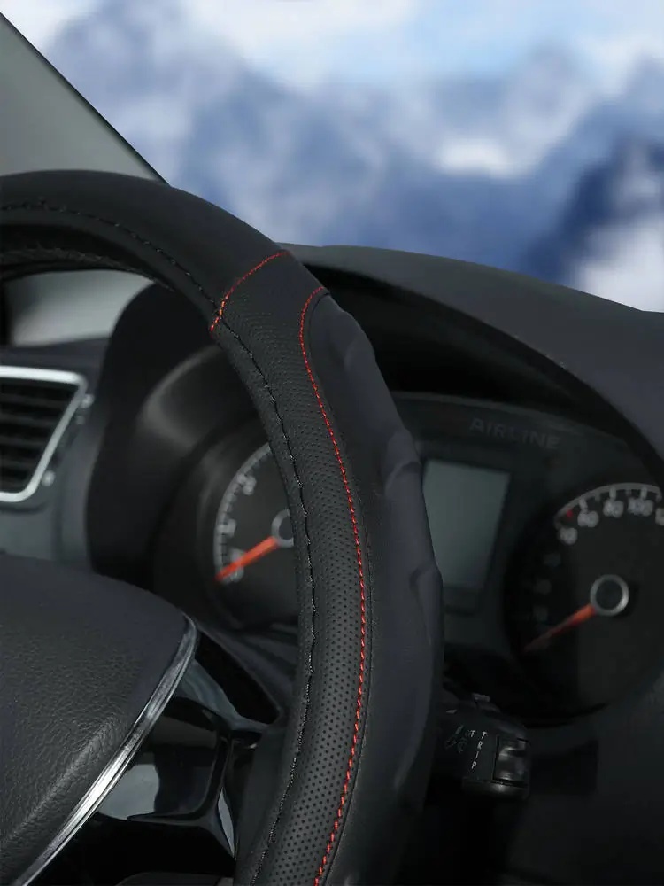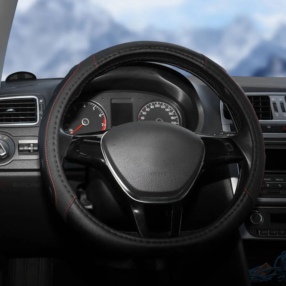 AWS-LI-22M AIRLINE Оплетка на руль, искусст. кожа, рельефная, черная, красн. прошивка, 38 см/М (AWS