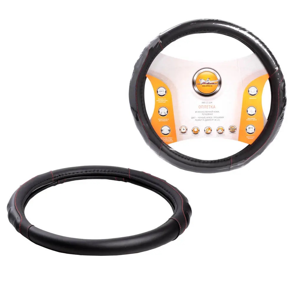| Наименование | Оплетка на руль, искусст. кожа, рельефная, черная, красн. прошивка, 38 см/М (AWS |