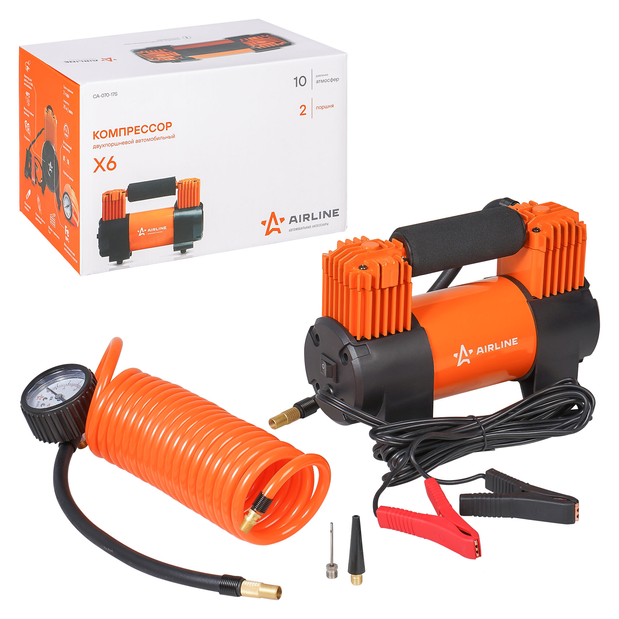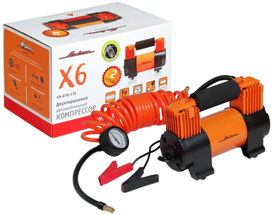 CA-070-17S AIRLINE Компрессор X6 двухпоршневой (70л/мин. 10 АТМ. от АКБ. серия STANDARD) CA-070-17S