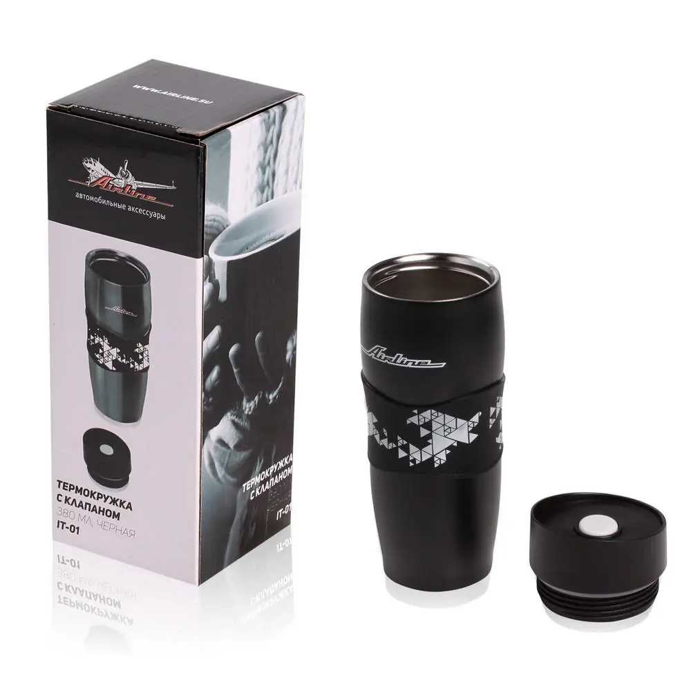 IT-01 AIRLINE Термокружка 380мл непроливайка черная AIRLINE