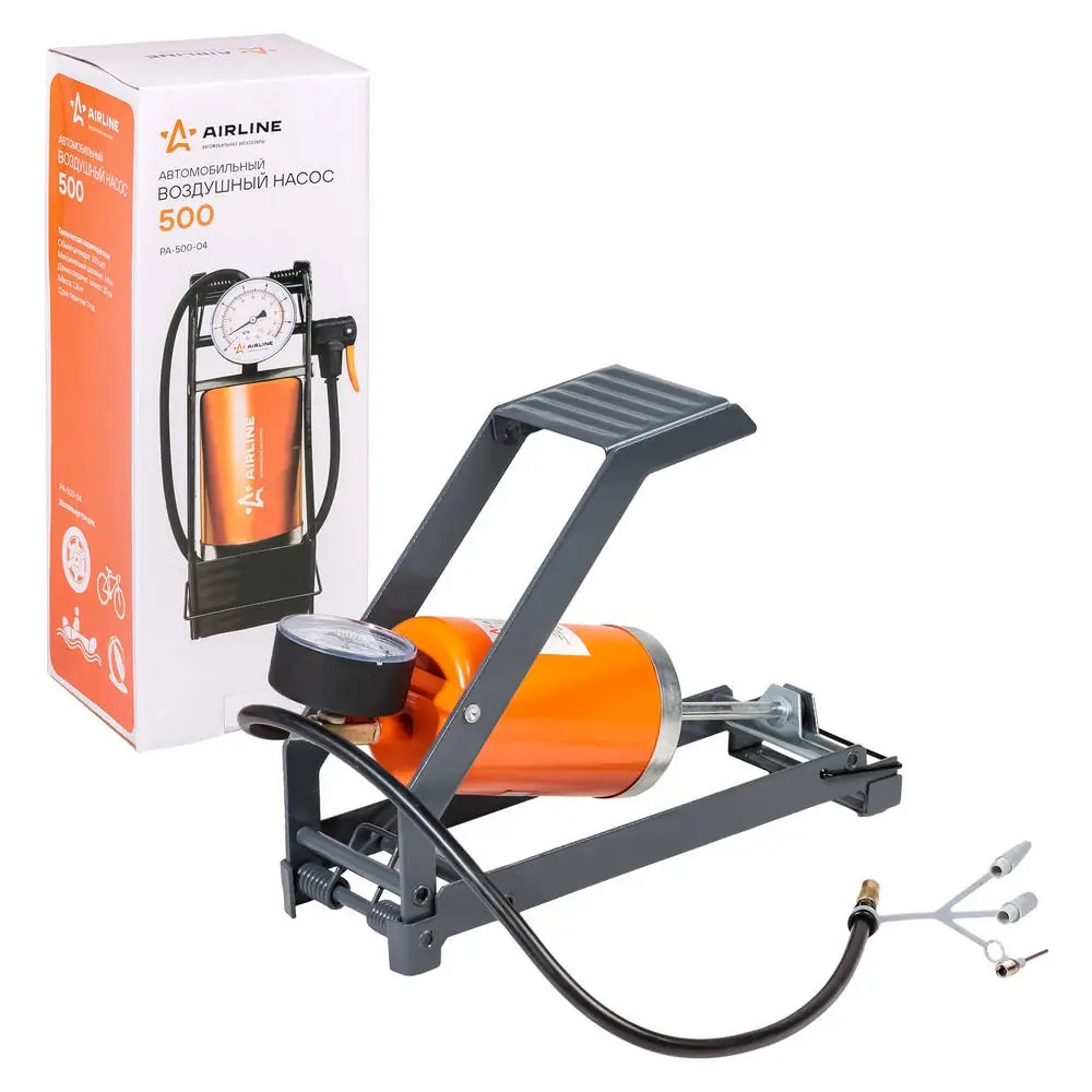 | Наименование | Насос ножной "AIRLINE" 500 (с манометром, механический, 300 см3) |