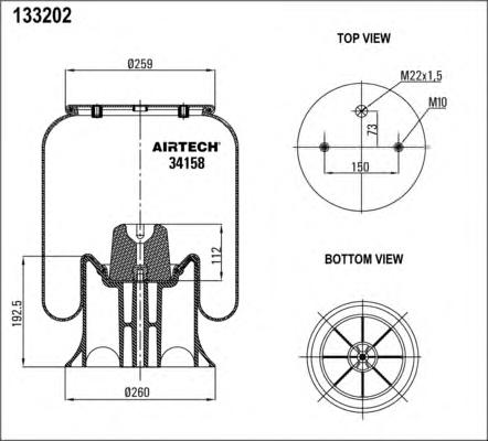 34158KPP AIRTECH пневмоподушка со стак. !2отв.M10 1отв-шт.M22 Порш пластиковый d13.5 \Schmitz/Wew