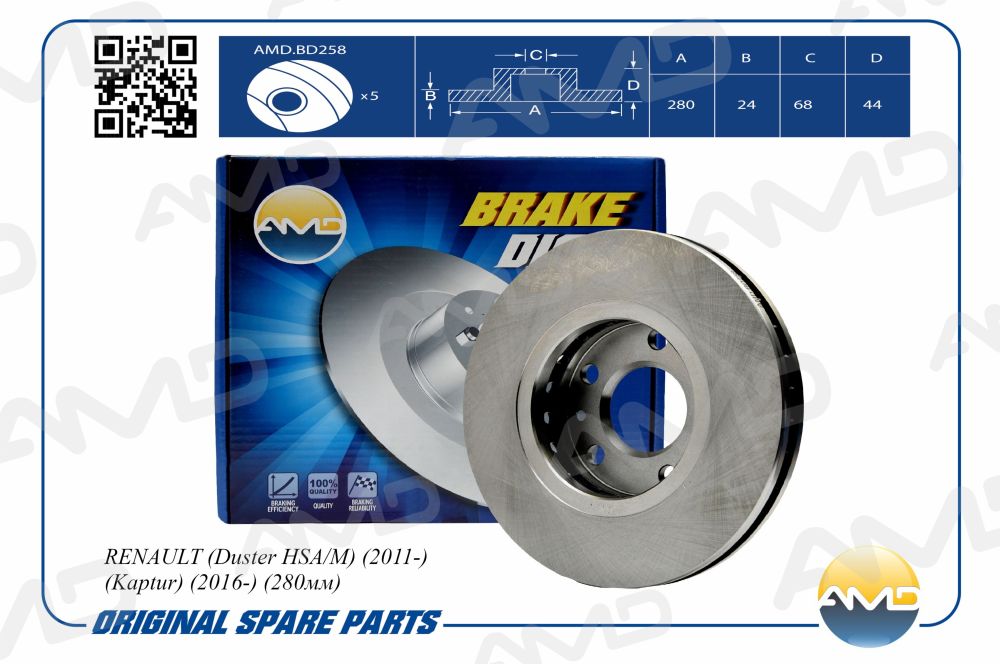 AMD.BD258 AMD Диск тормозной передний (280 mm RENAULT Duster HSA/M, 2011-, Kaptur, 2016-, 280м