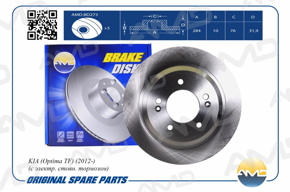 AMD.BD275 AMD Диск тормозной задний KIA Optima TF, 2012-, с электр. стоян. тормозом AMDBD275