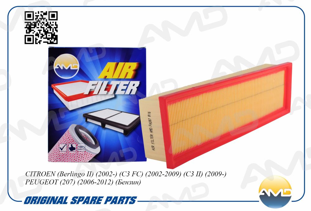 AMD.FA387 AMD Фильтр воздушный CITROEN Berlingo II, 2002-, C3 FC, 2002-2009, C3 II, 2009-, PEU